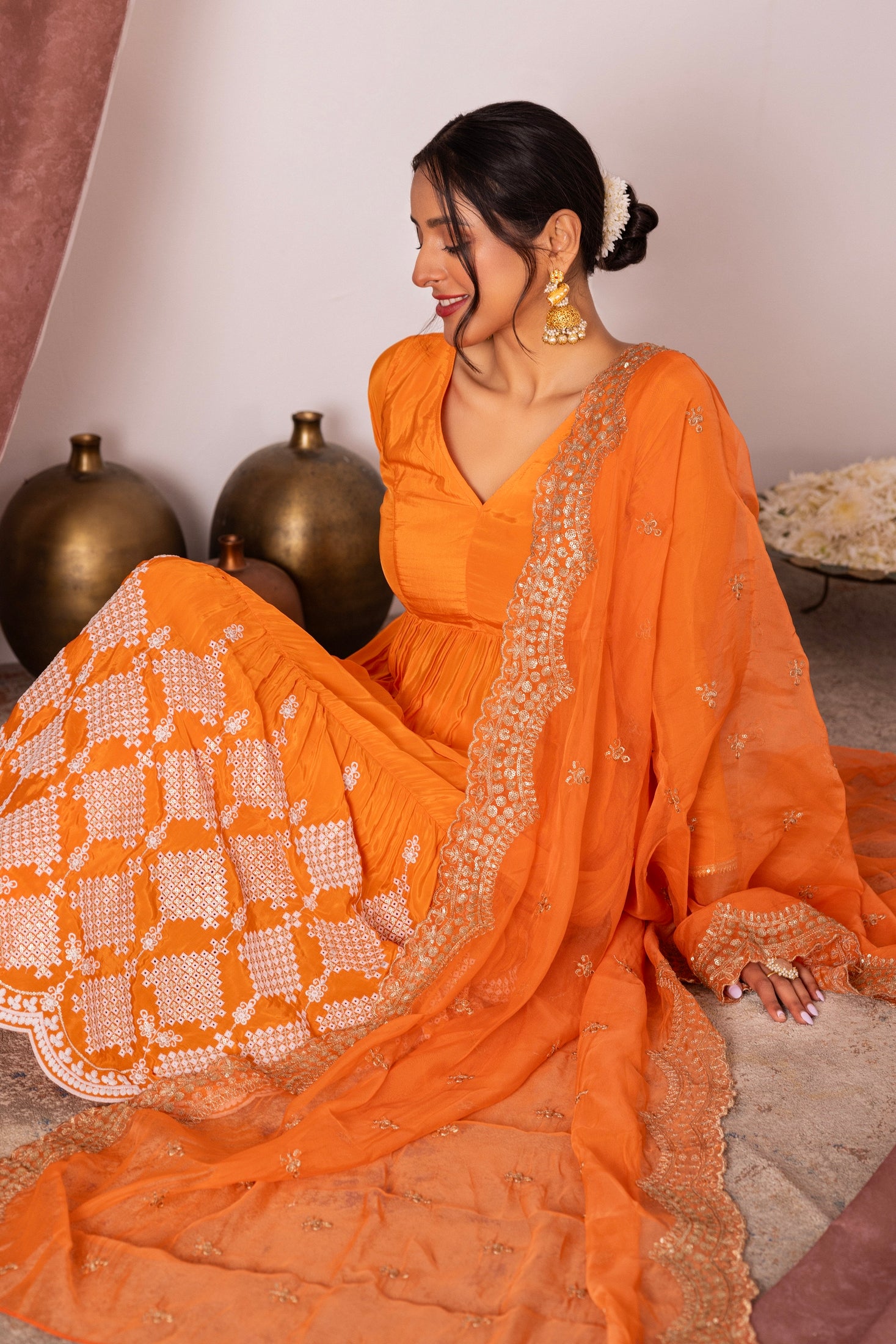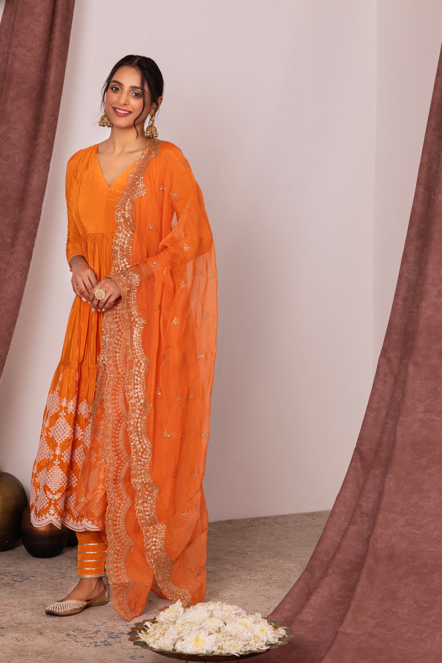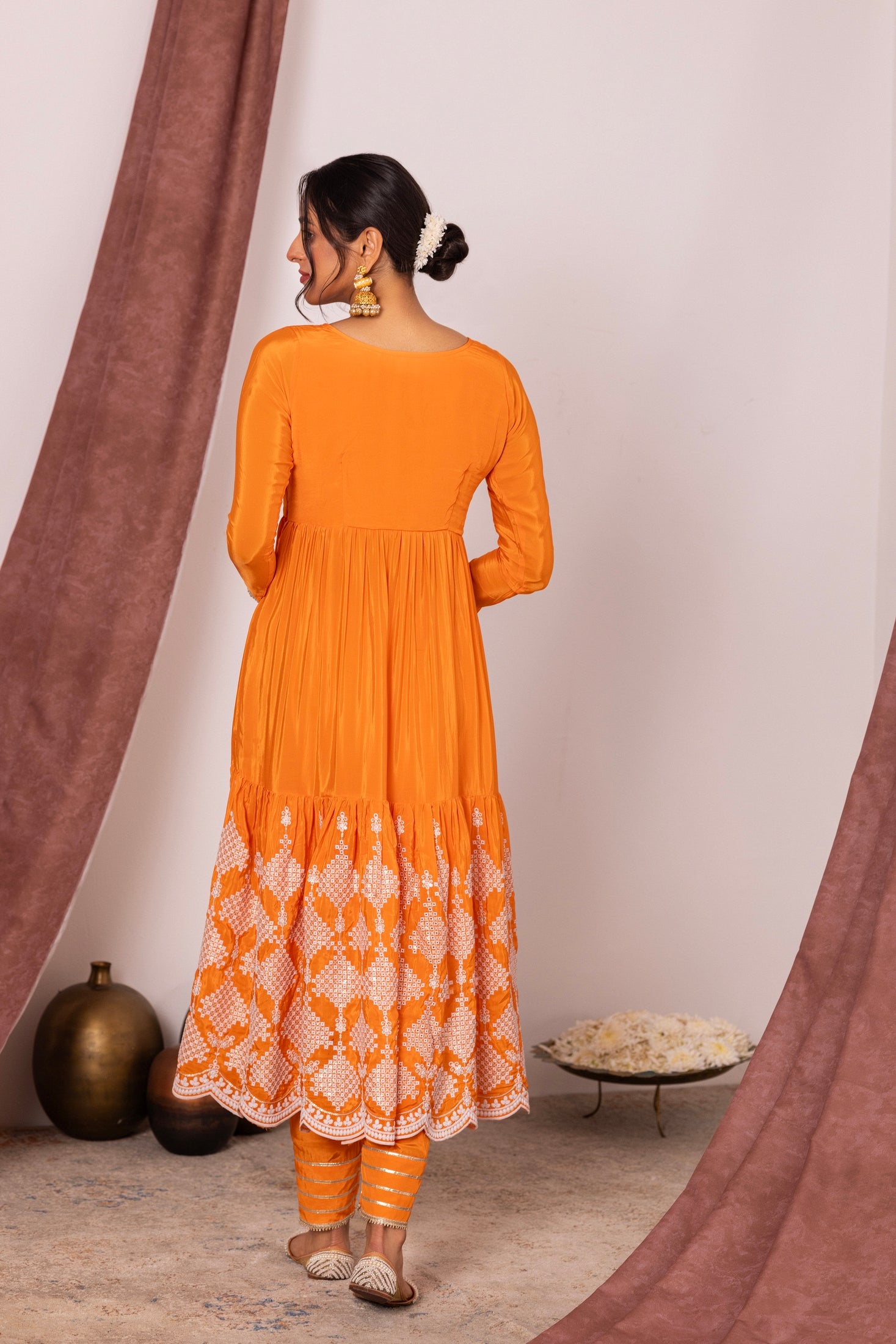 Bright Orange FLARED EMBROIDERED SUIT SET