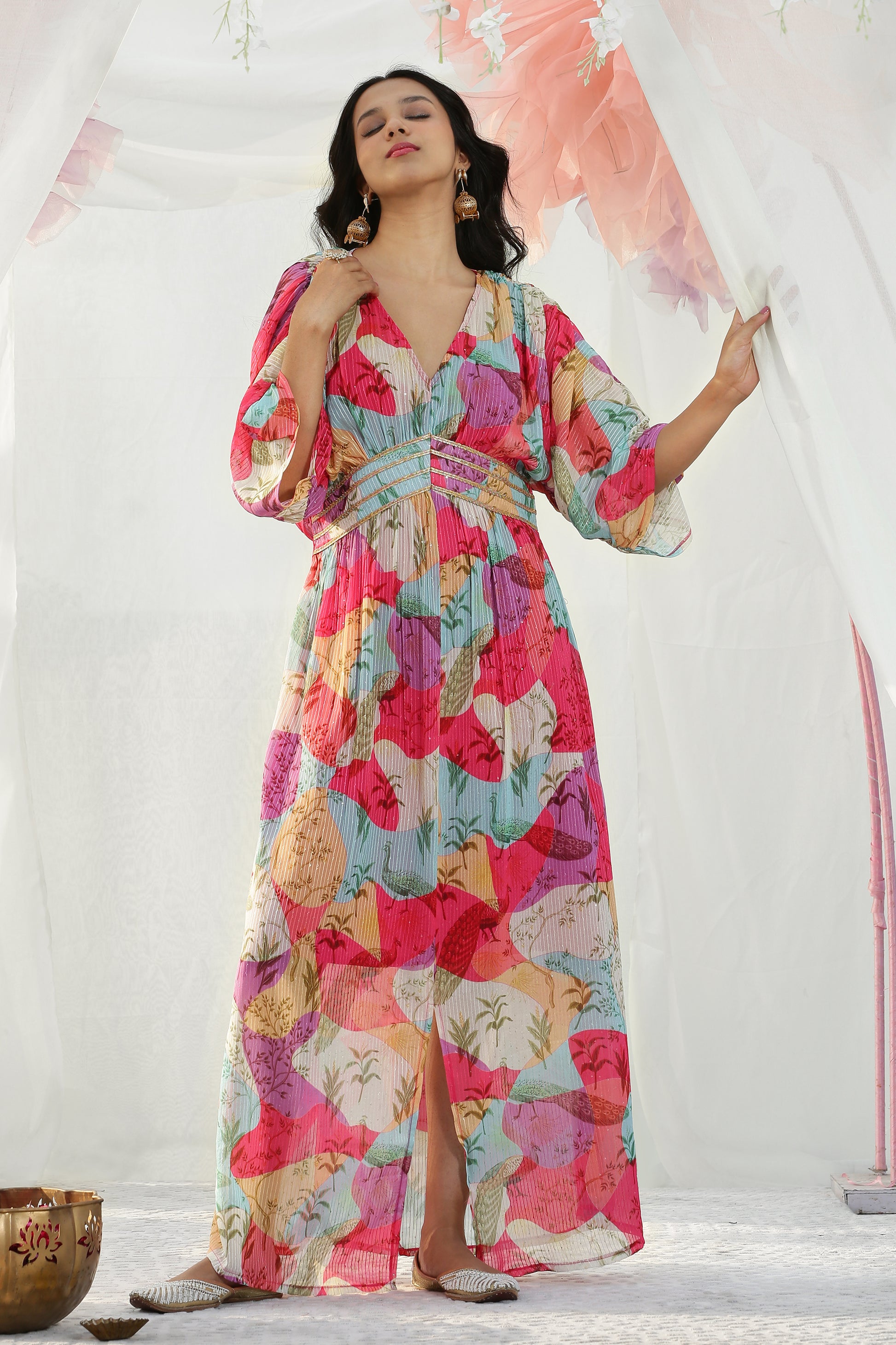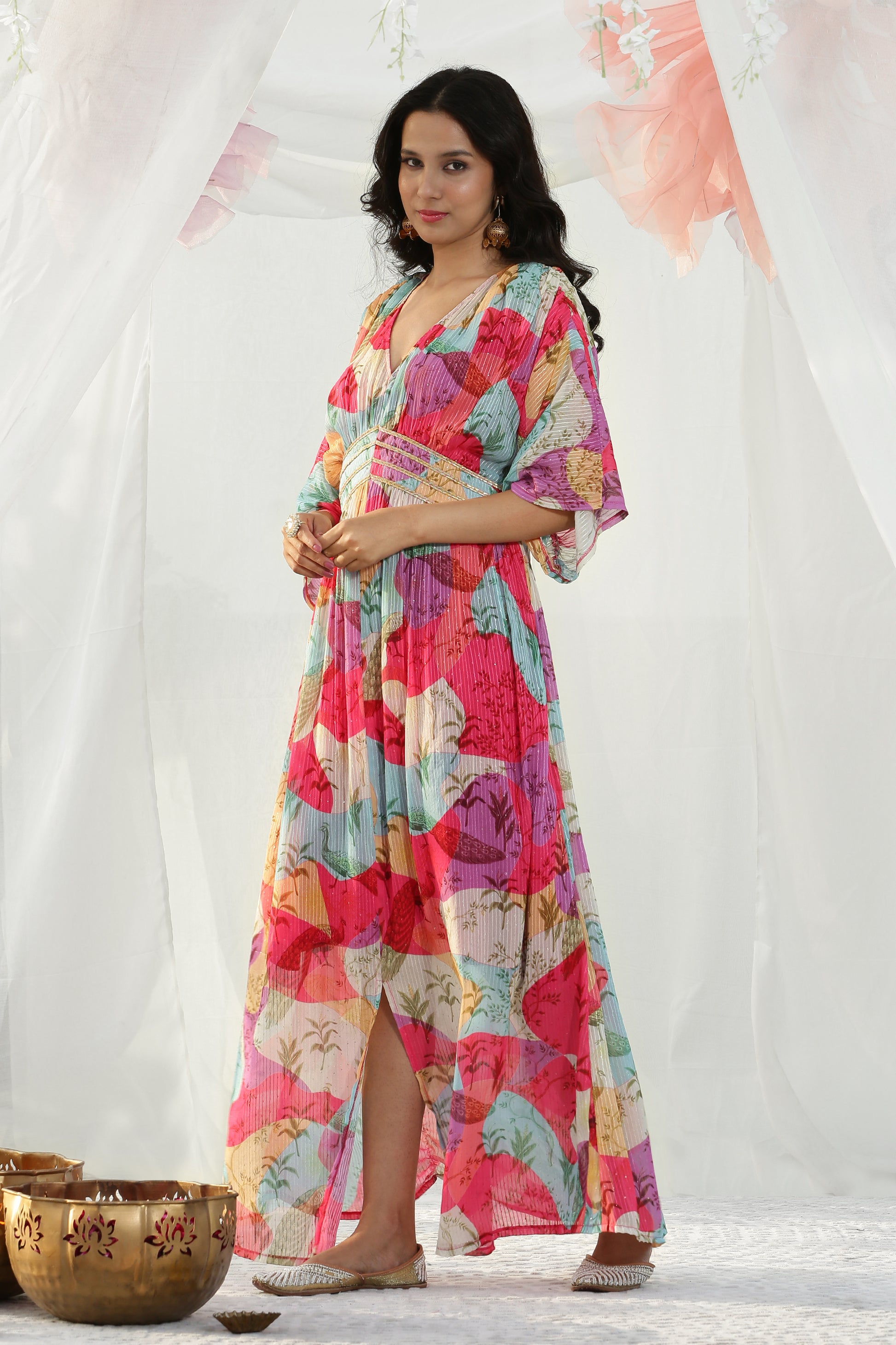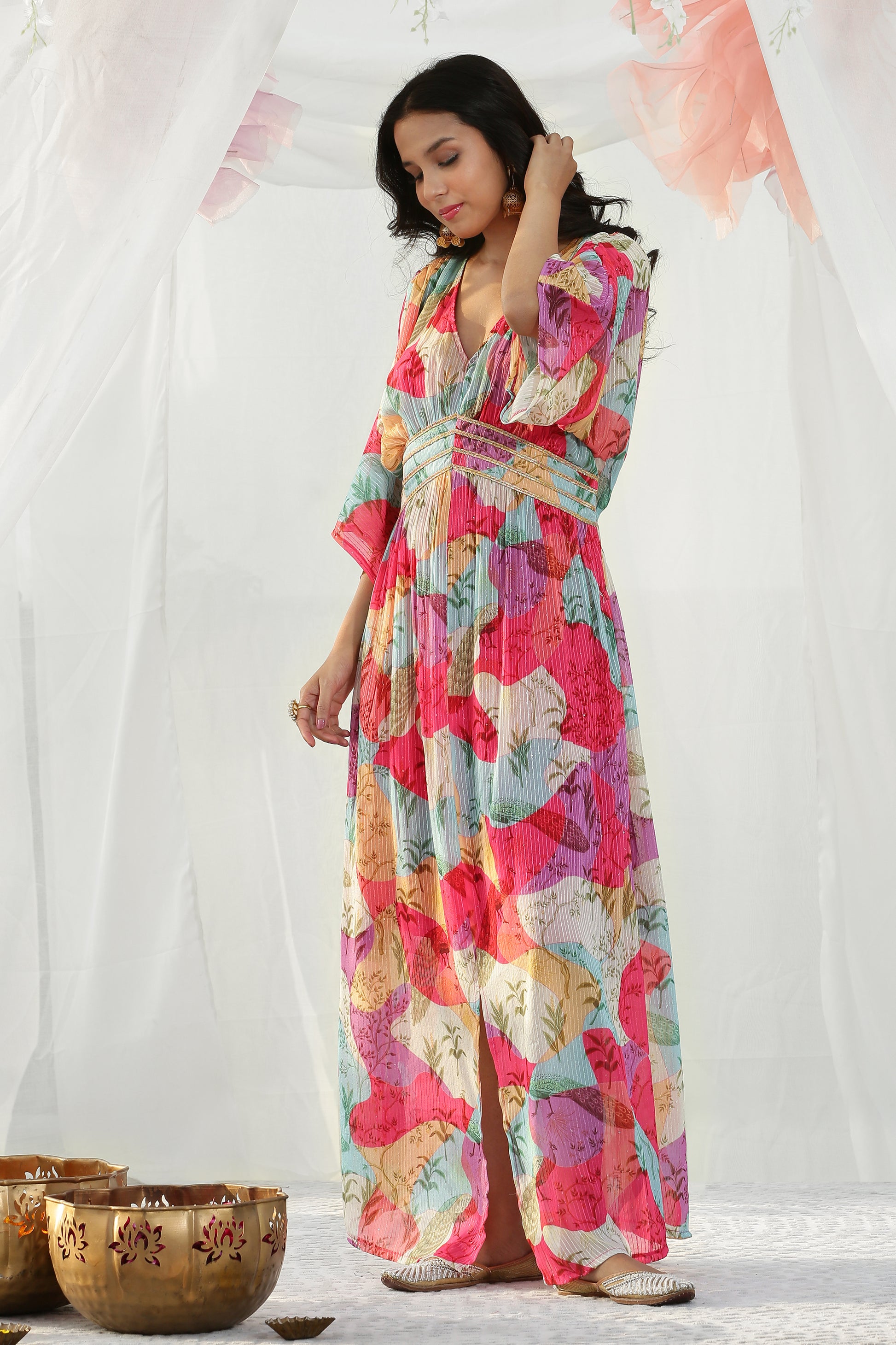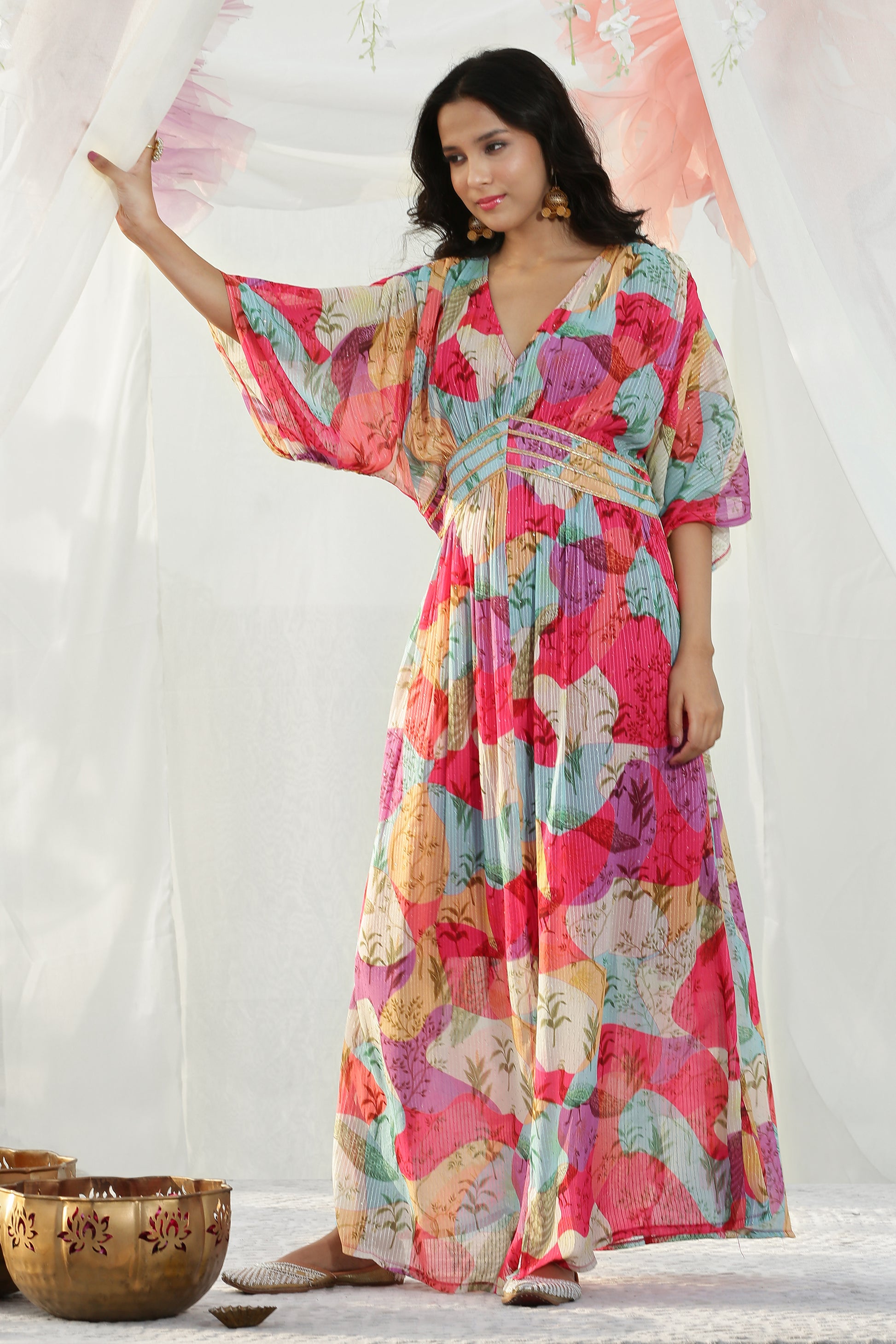 Color Blocked Kaftan Maxi Dress