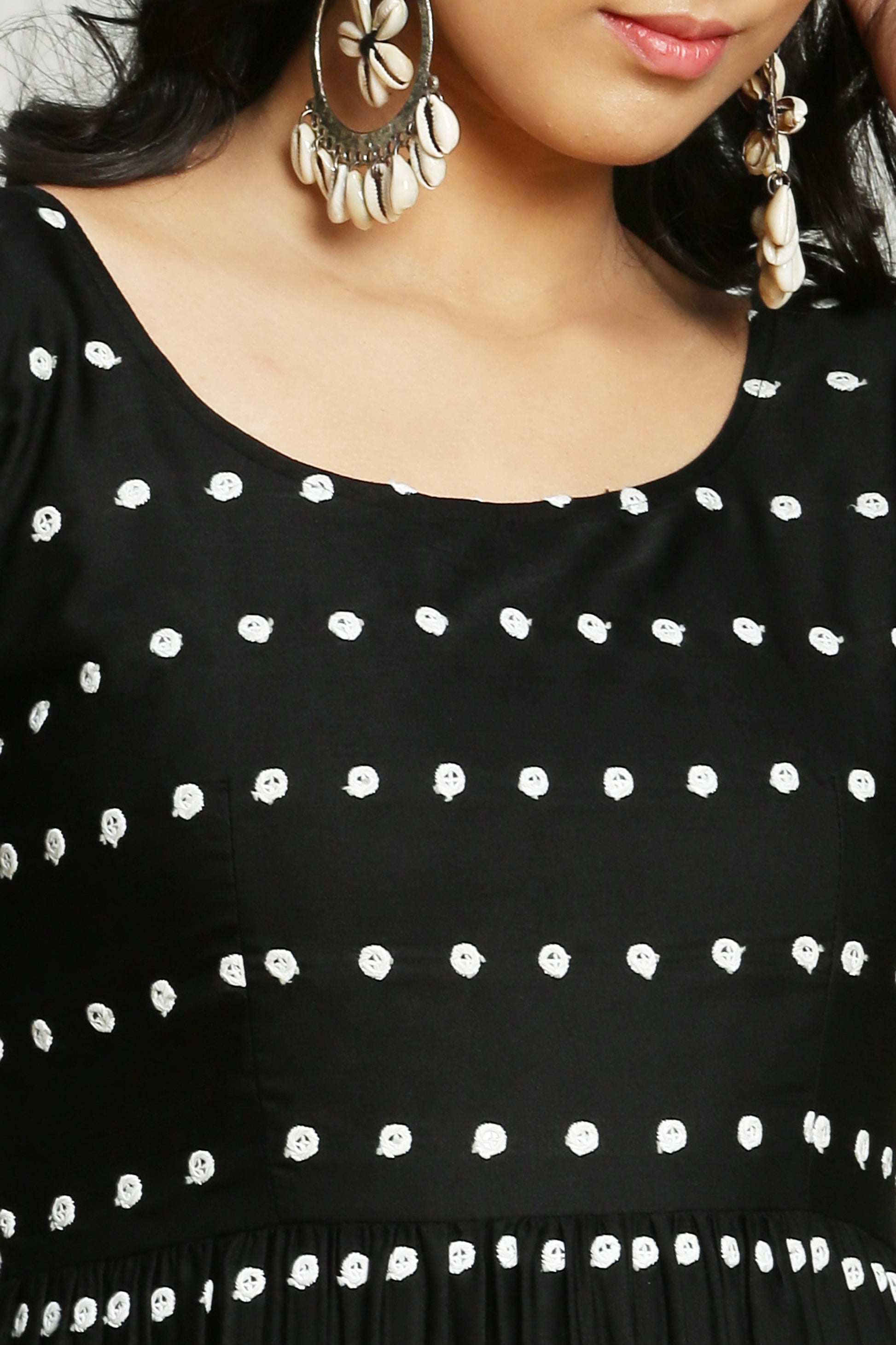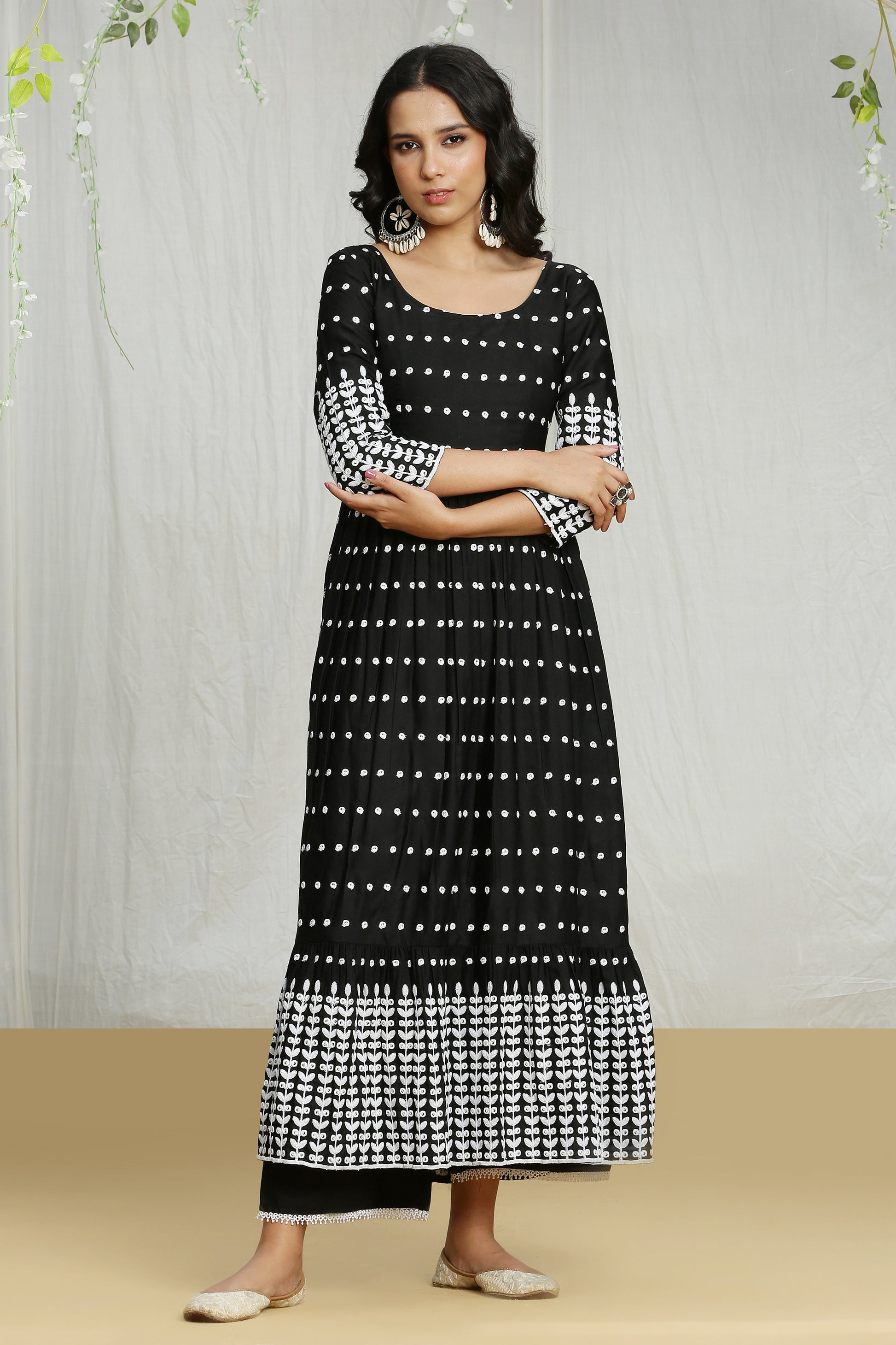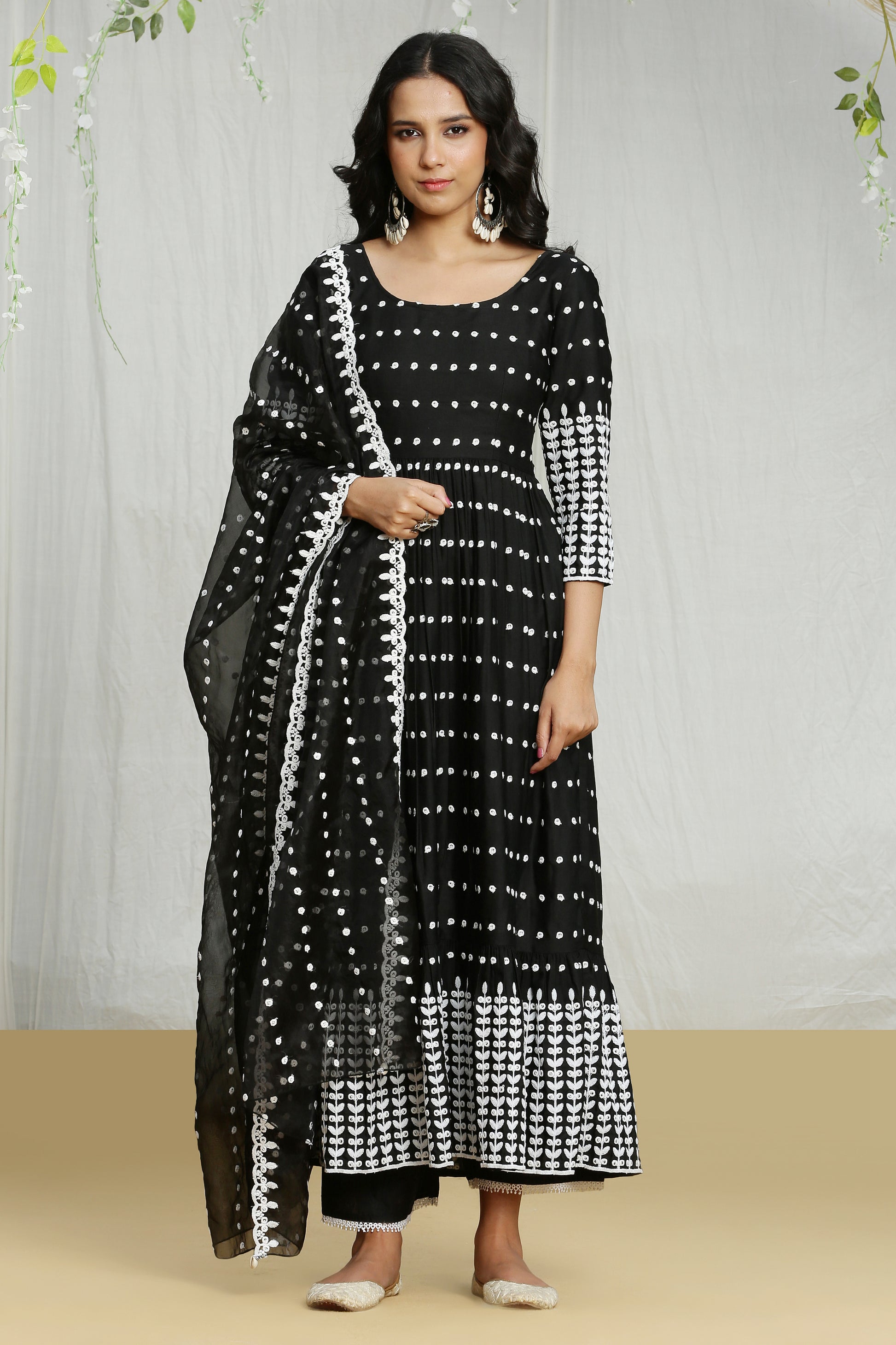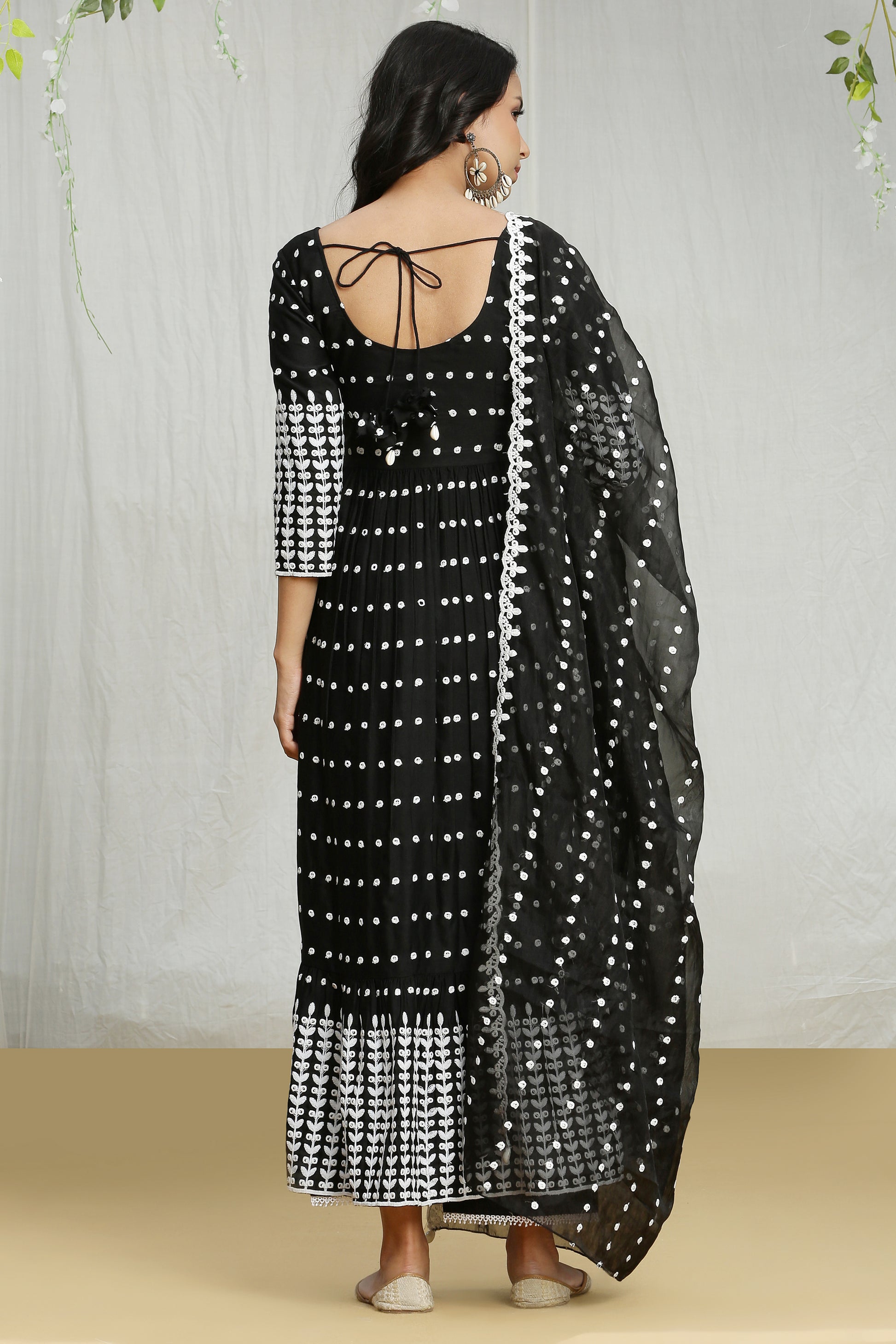 Black Buti Embroidered Kurta Set with Organza Dupatta