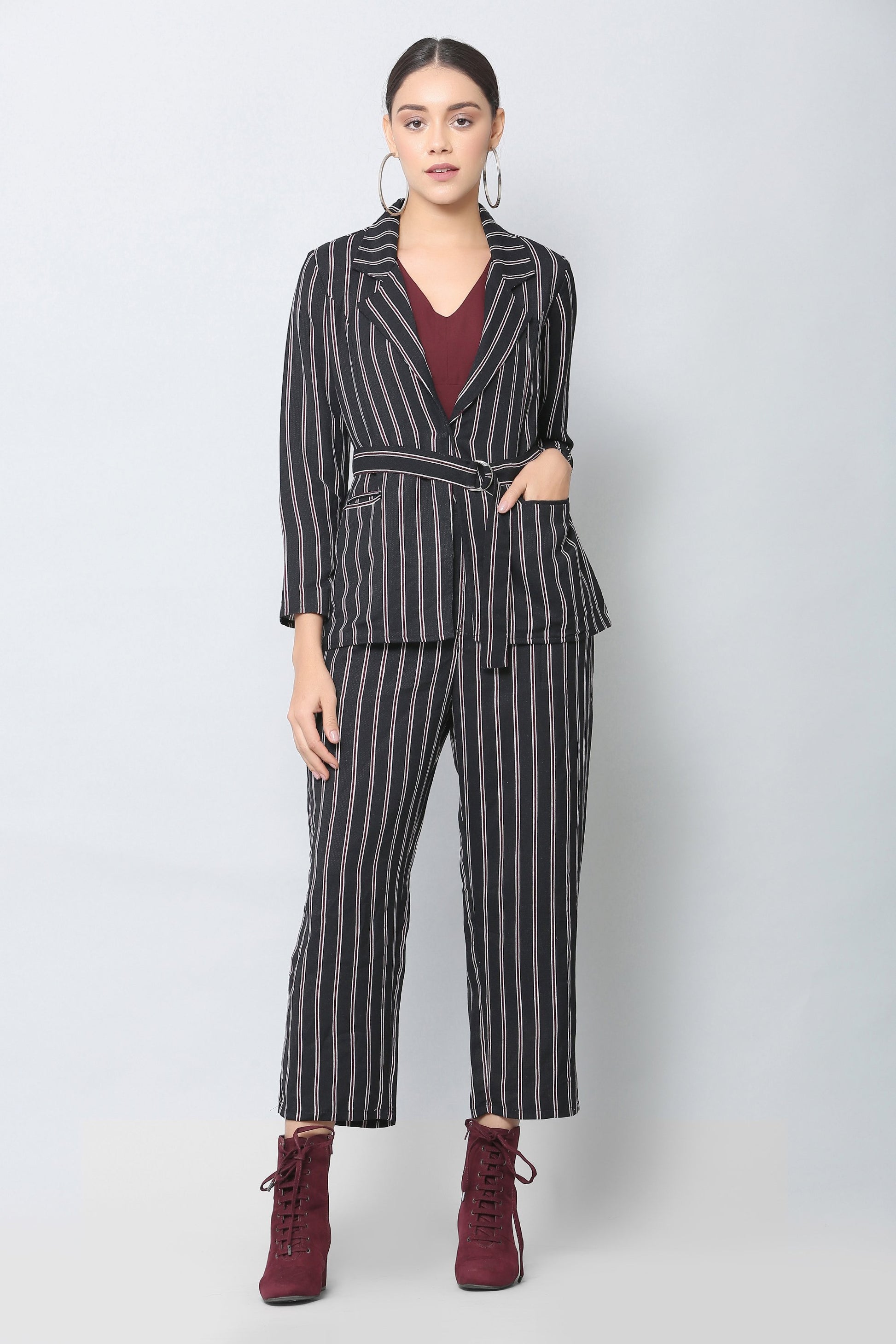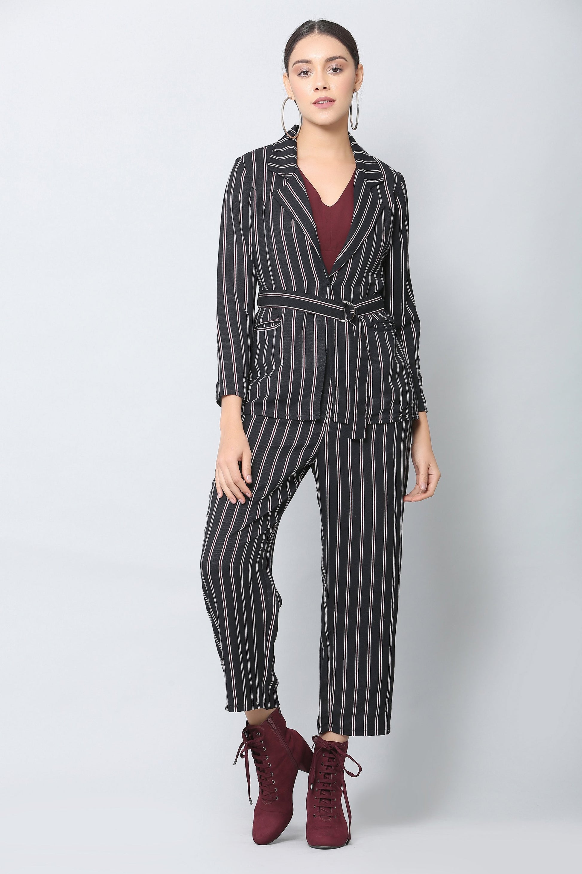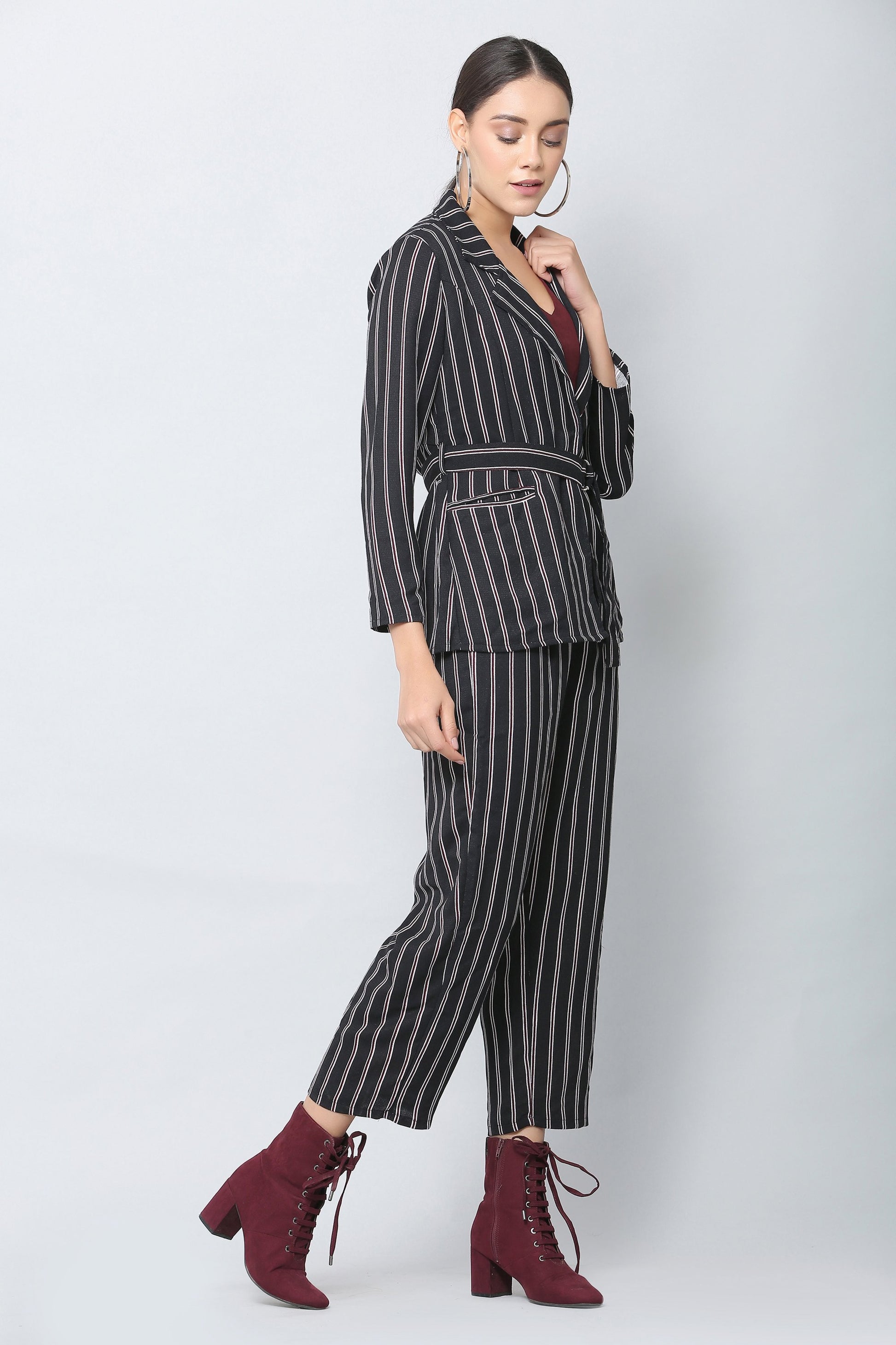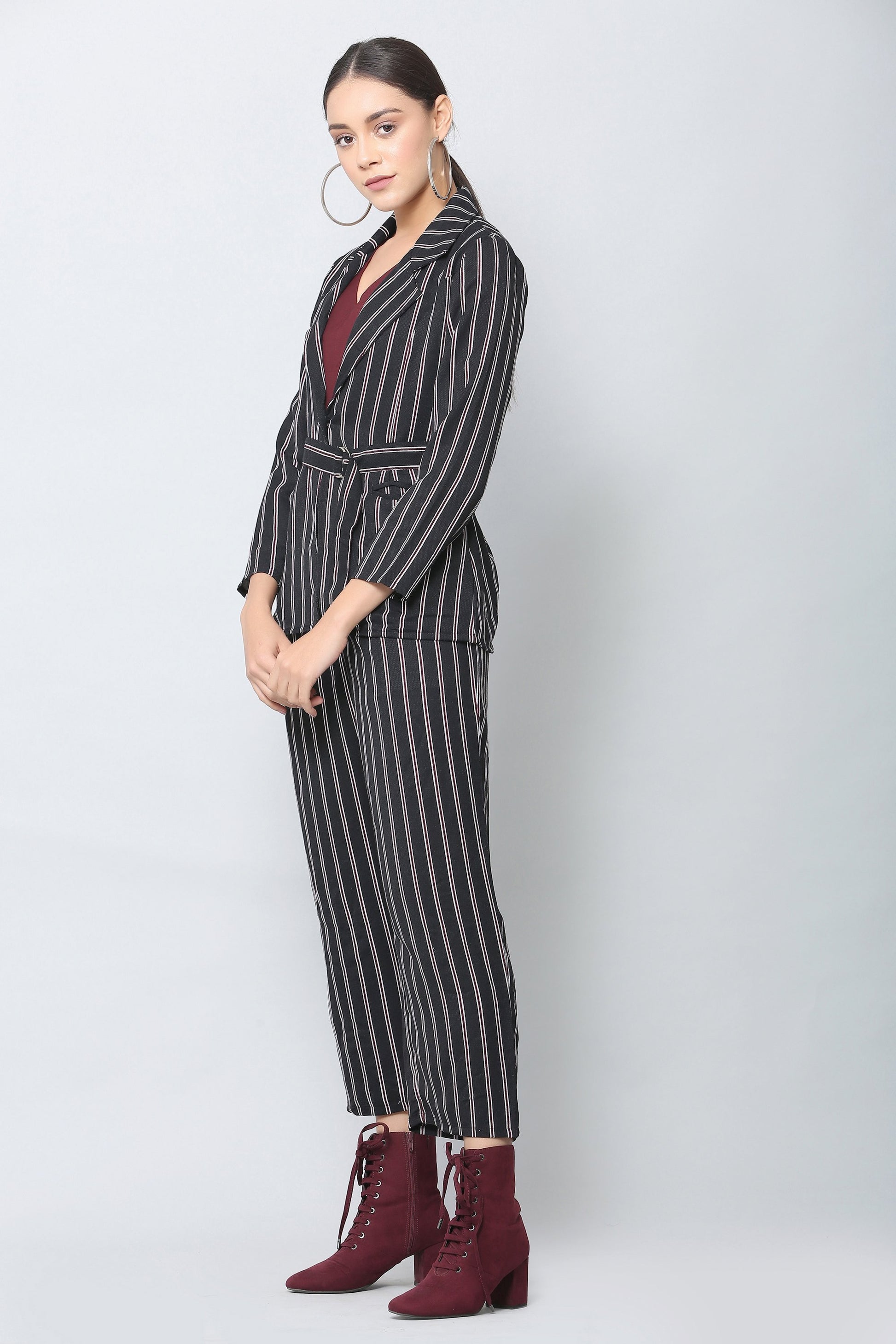 Dark Navy Striped Blazer and Pants Co-ord Set