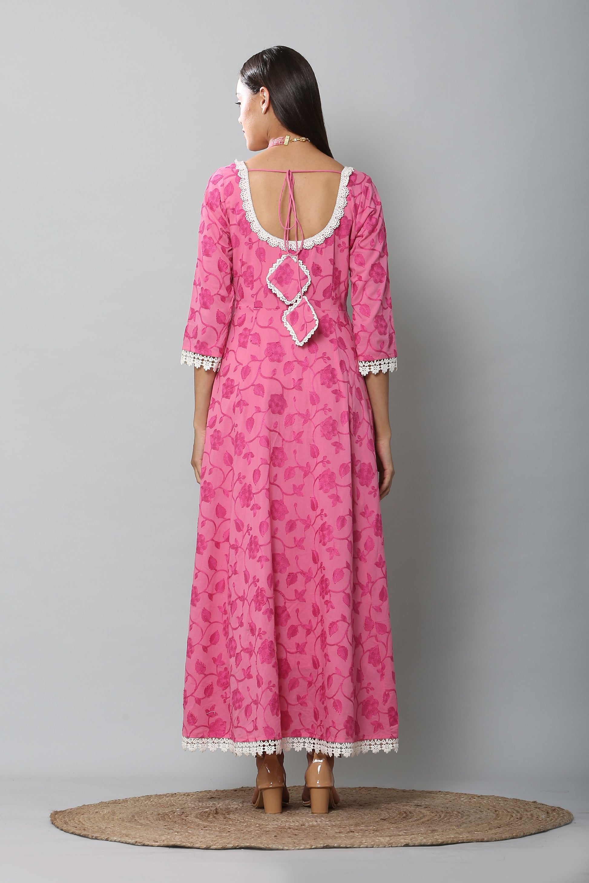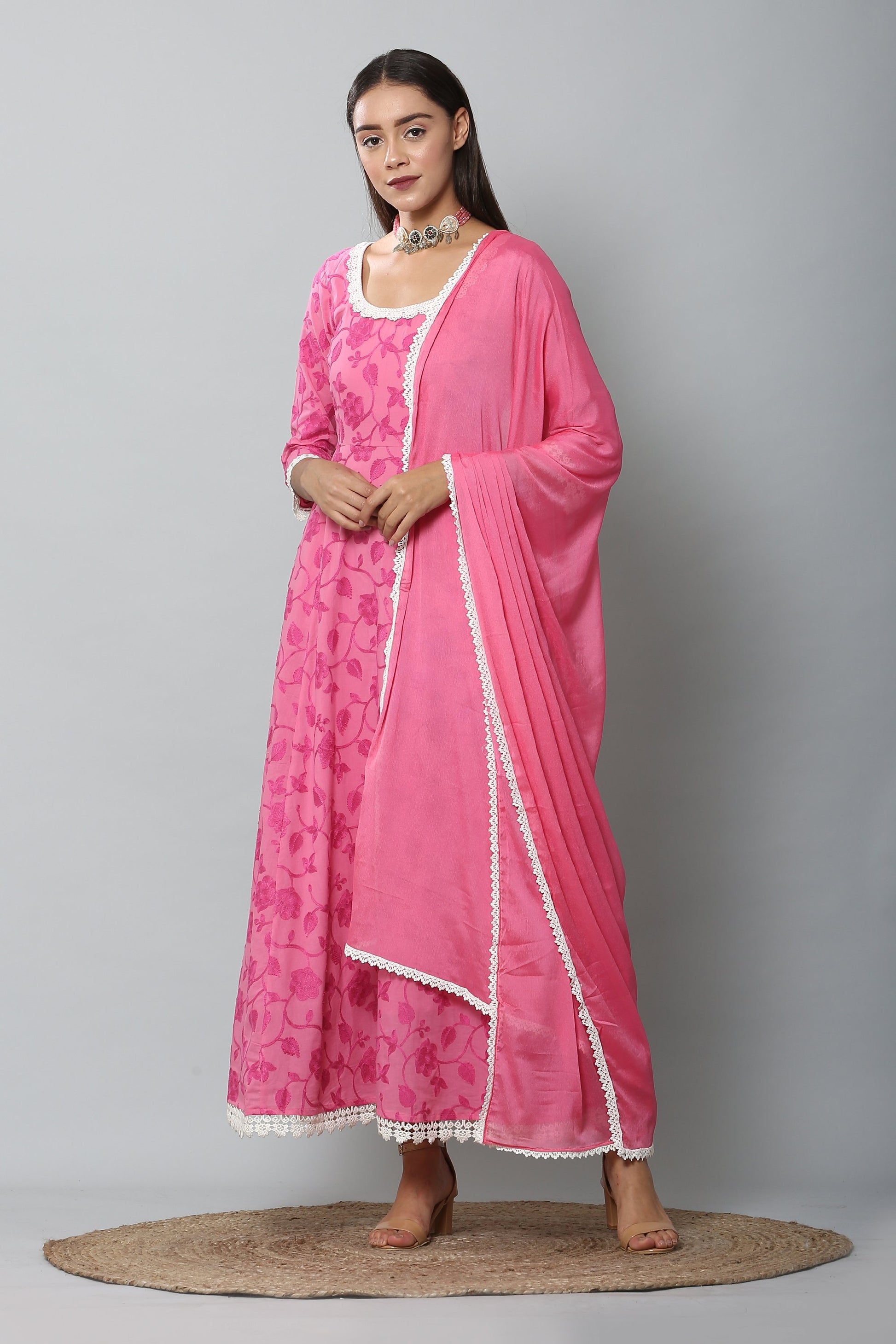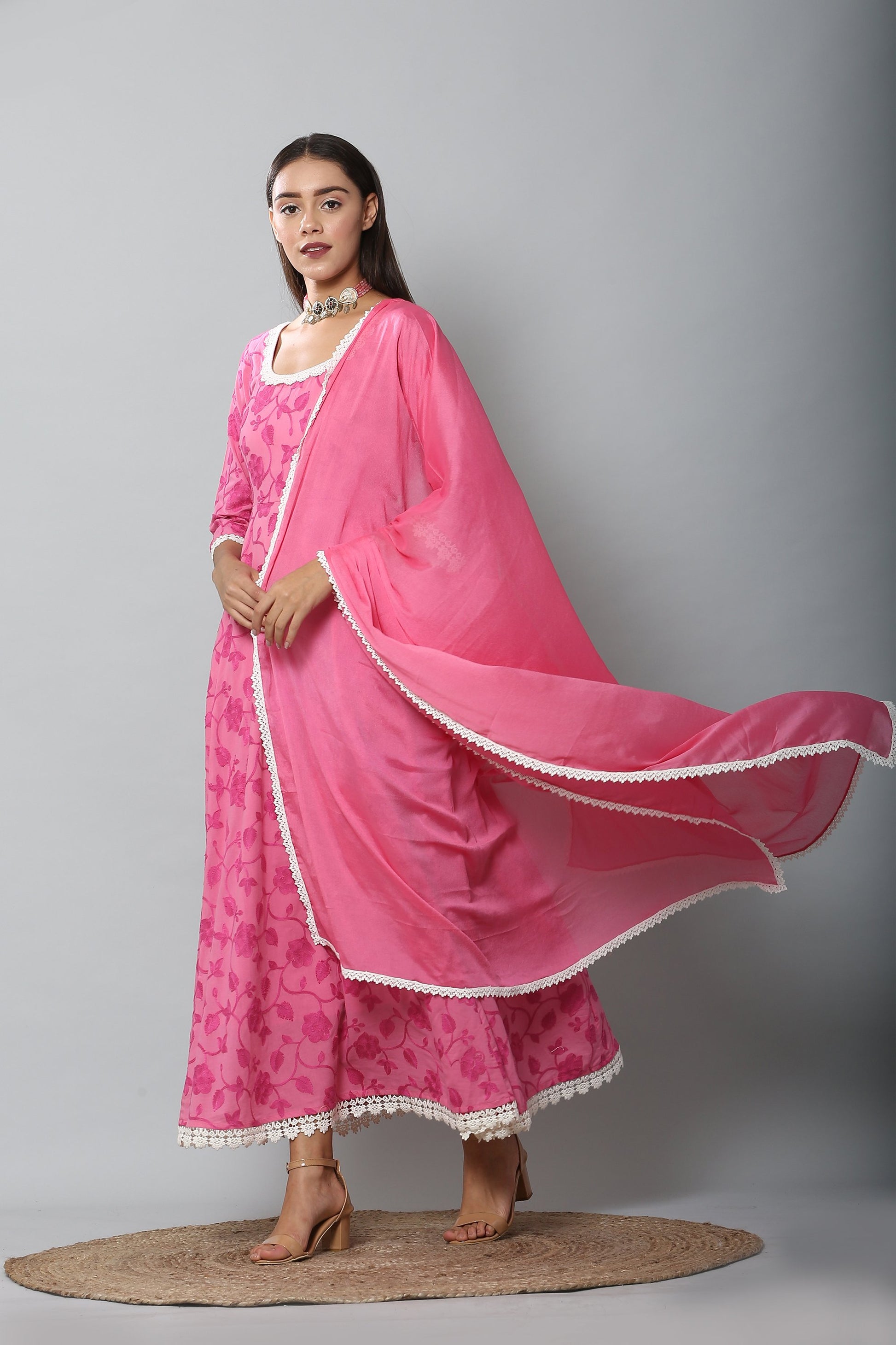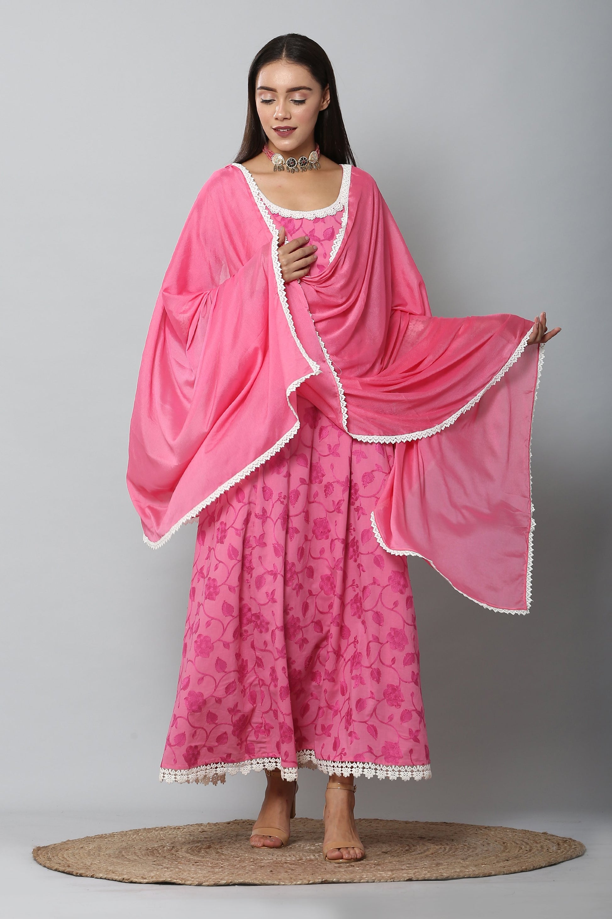Fuschia Chain Stitch Embroidered Gown and Dupatta Set