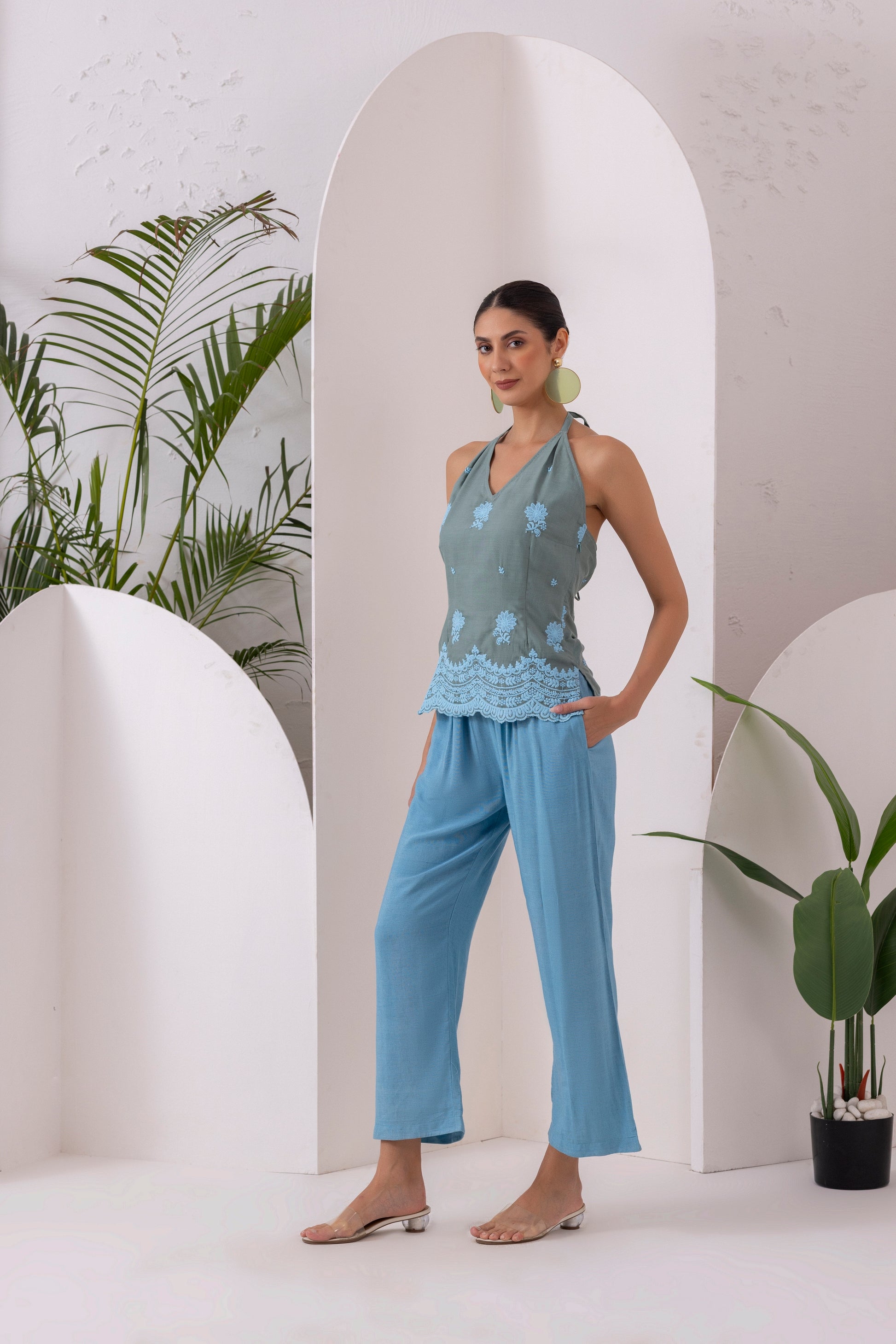 GREEN BLUE EMBROIDERED CO-ORD SET