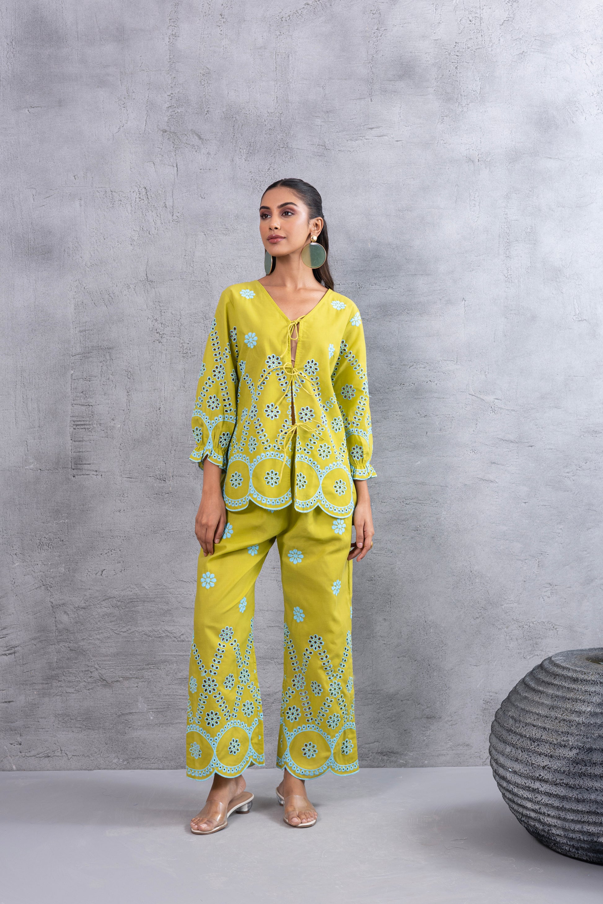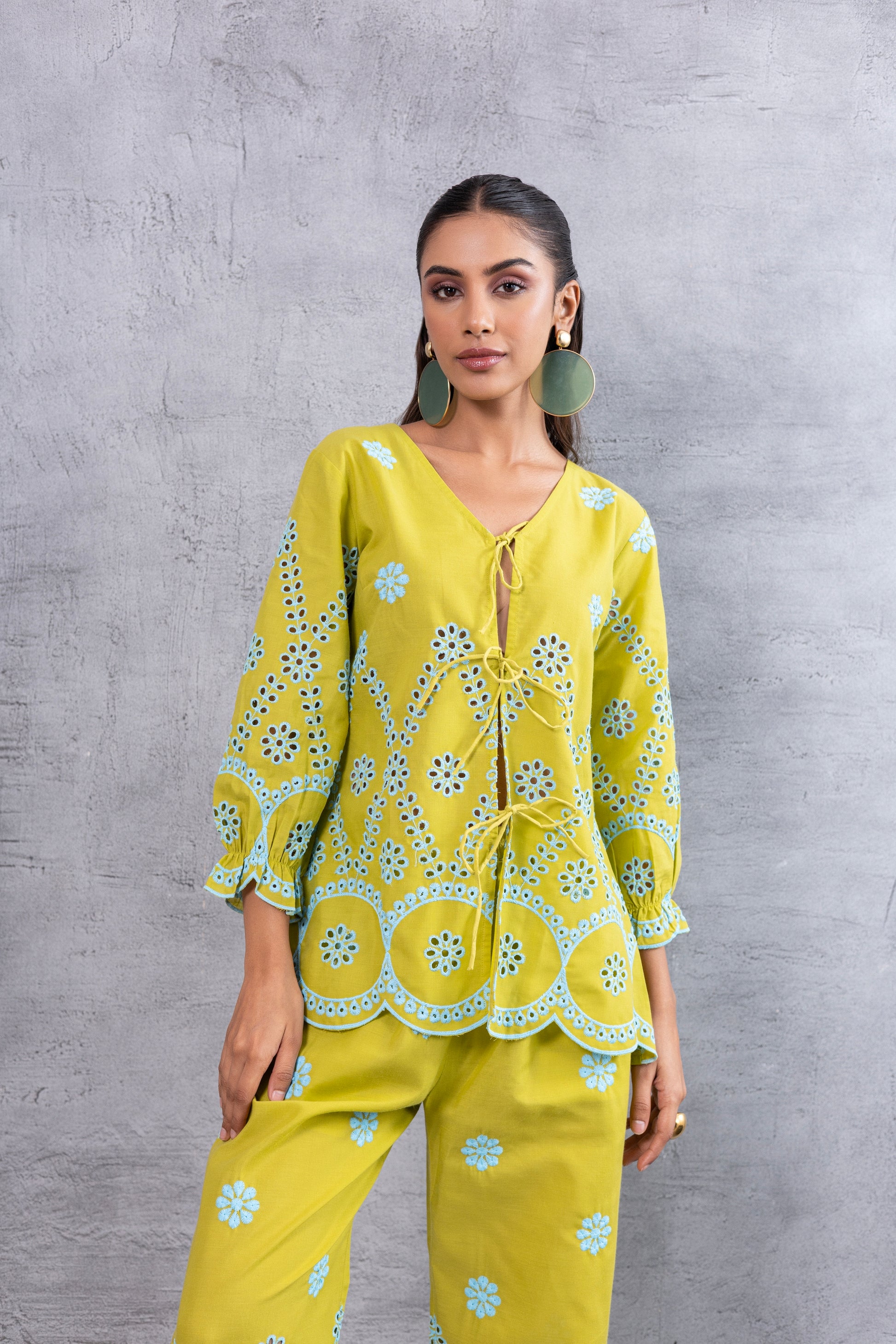 LIME AND BLUE FLORAL EMBROIDERED CO-ORD SET