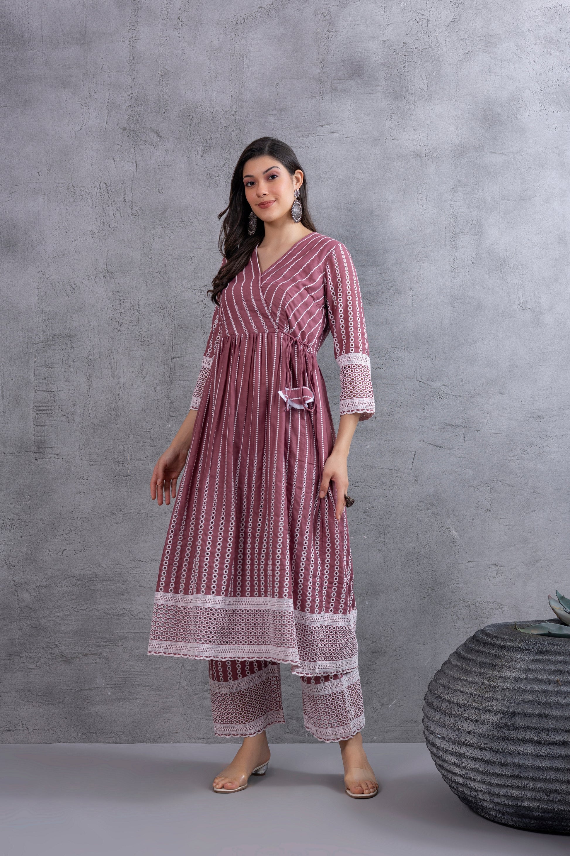 Dusty Pink Angrakha Style Chikankari Kurta set
