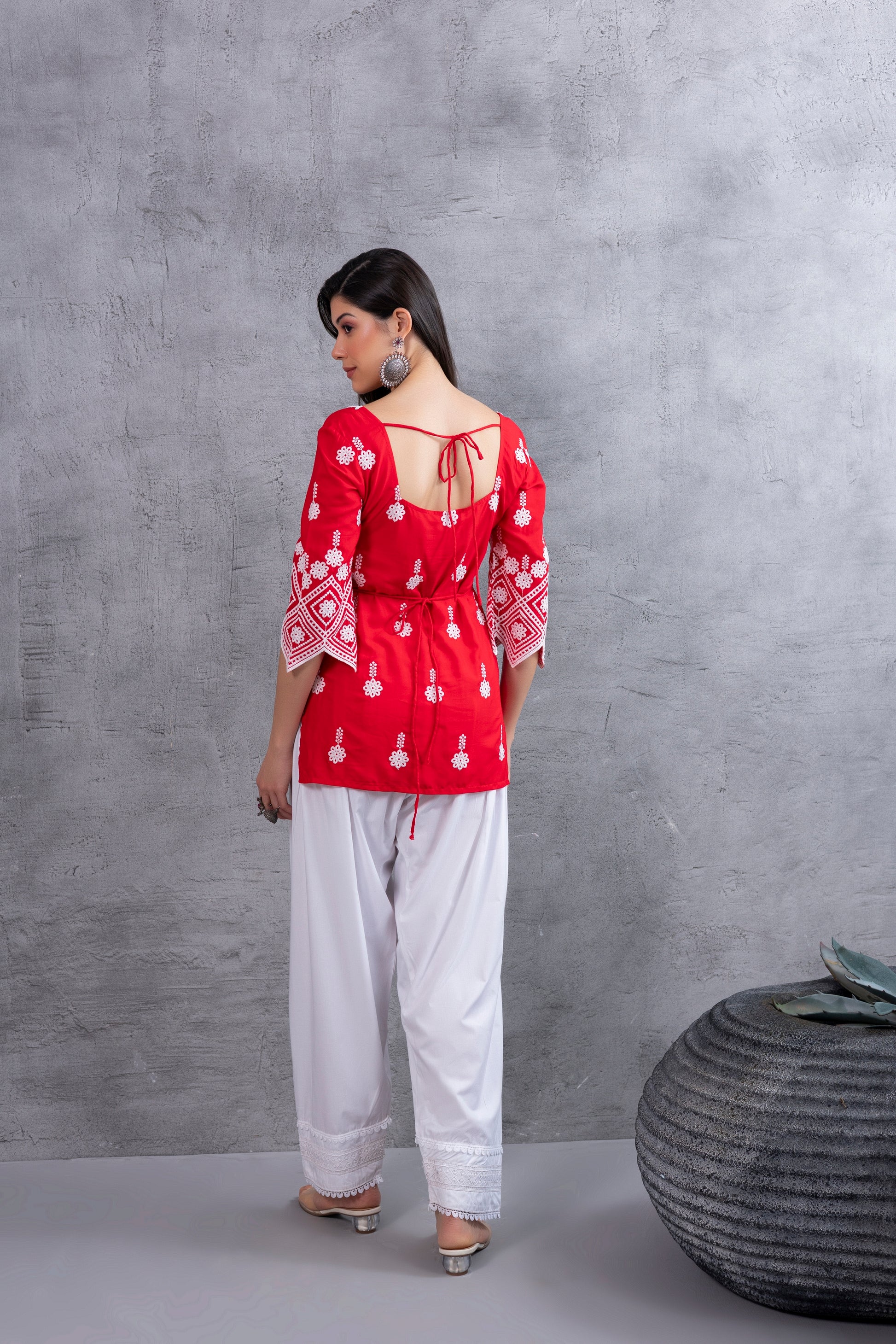 RED CHIKANKARI EMBROIDERED SALWAR SET