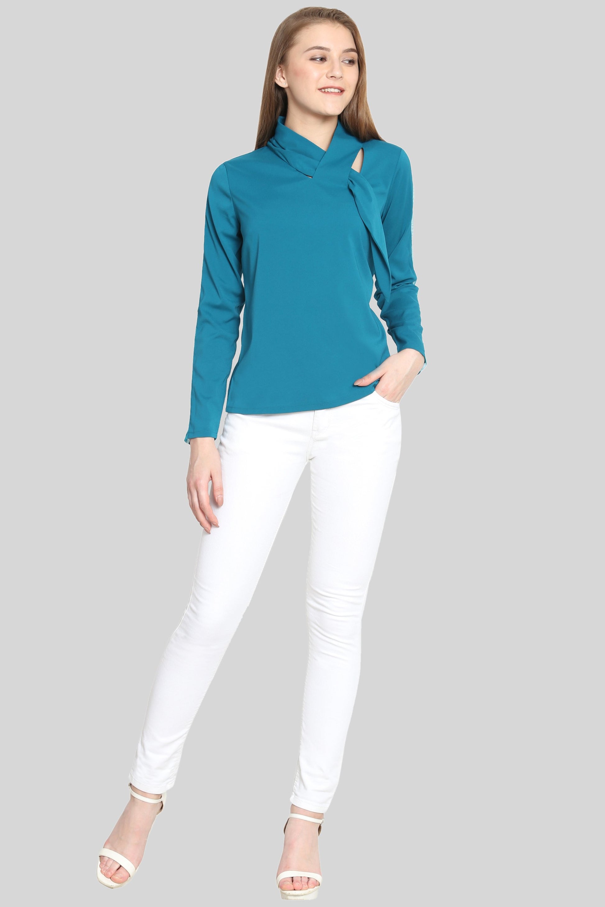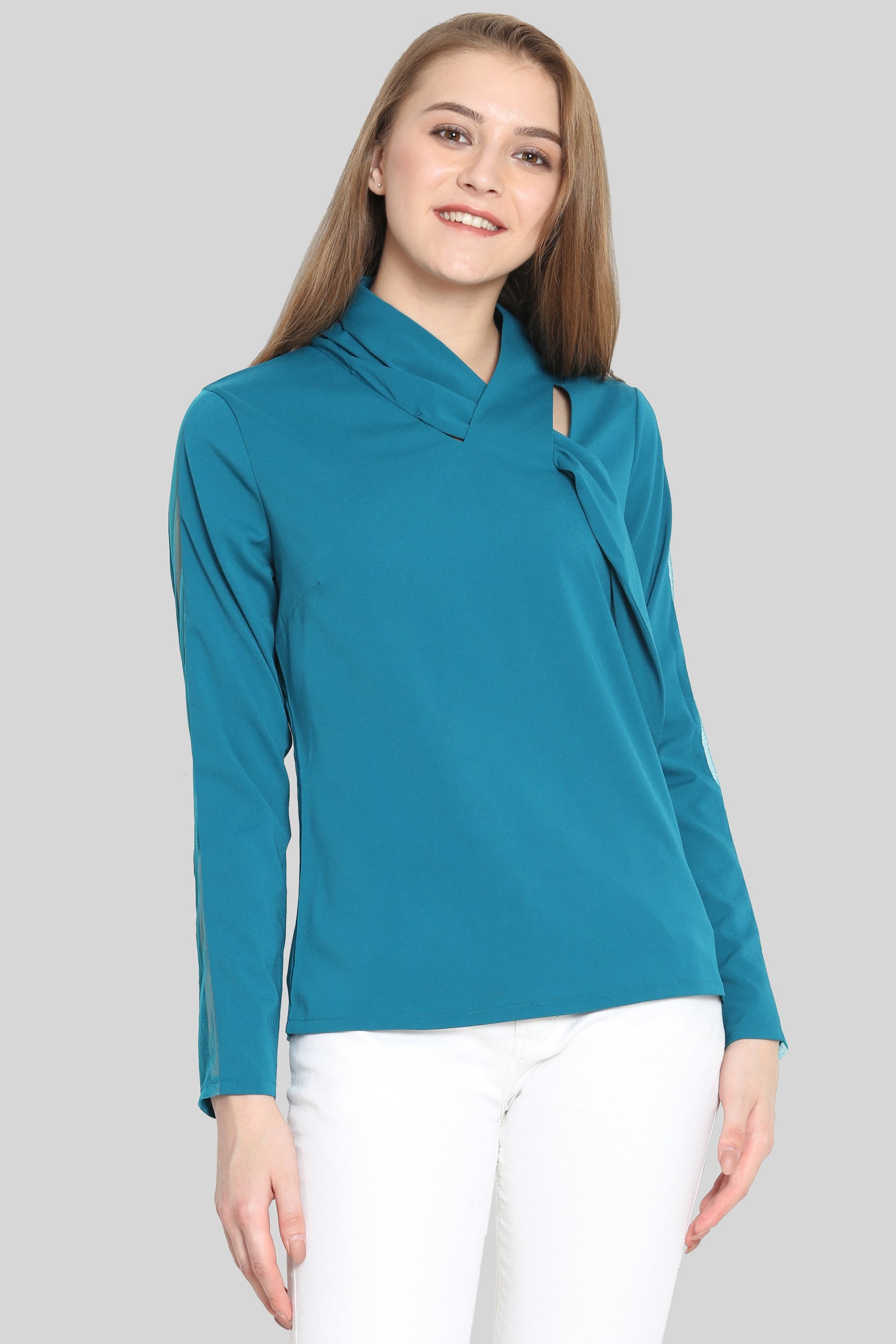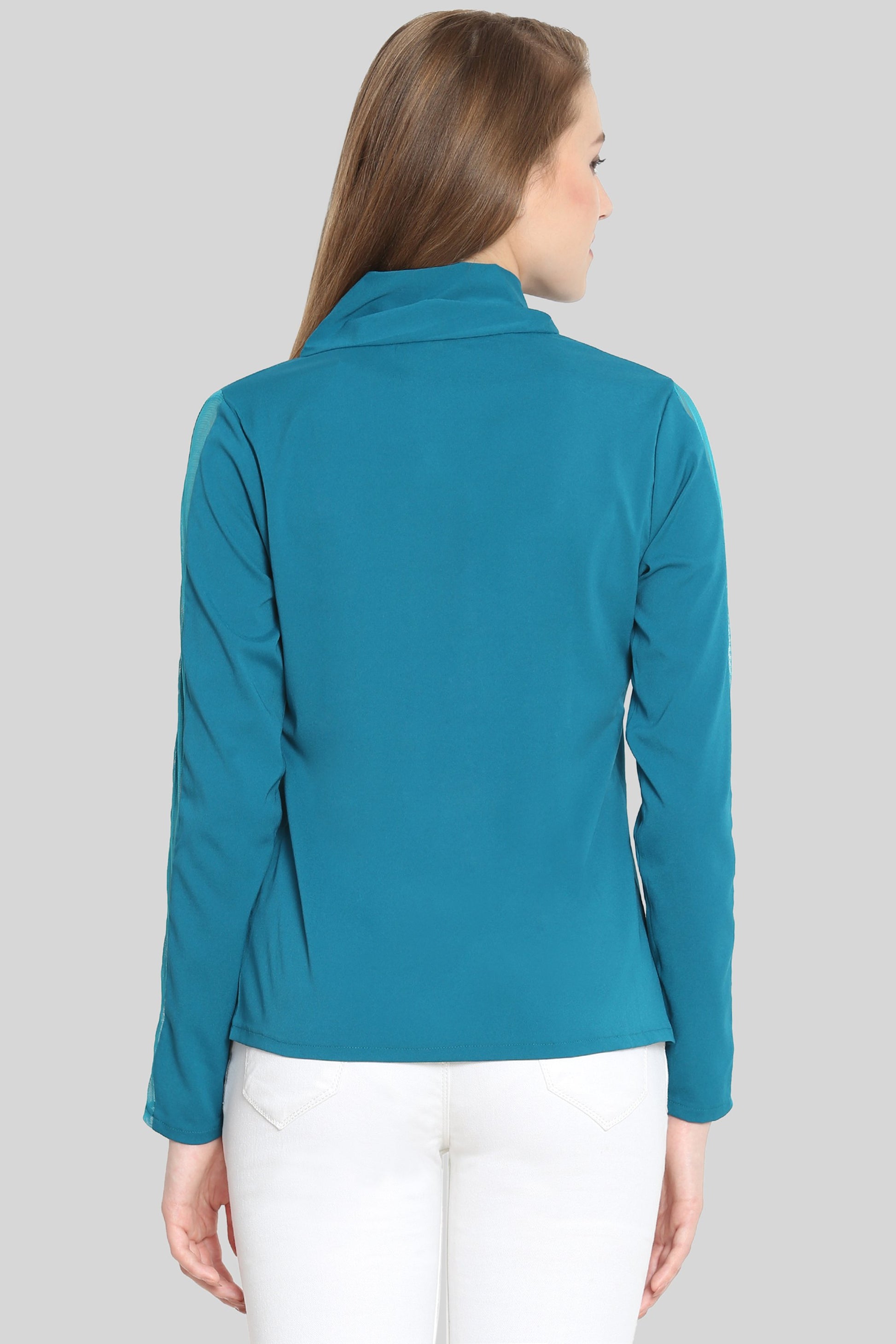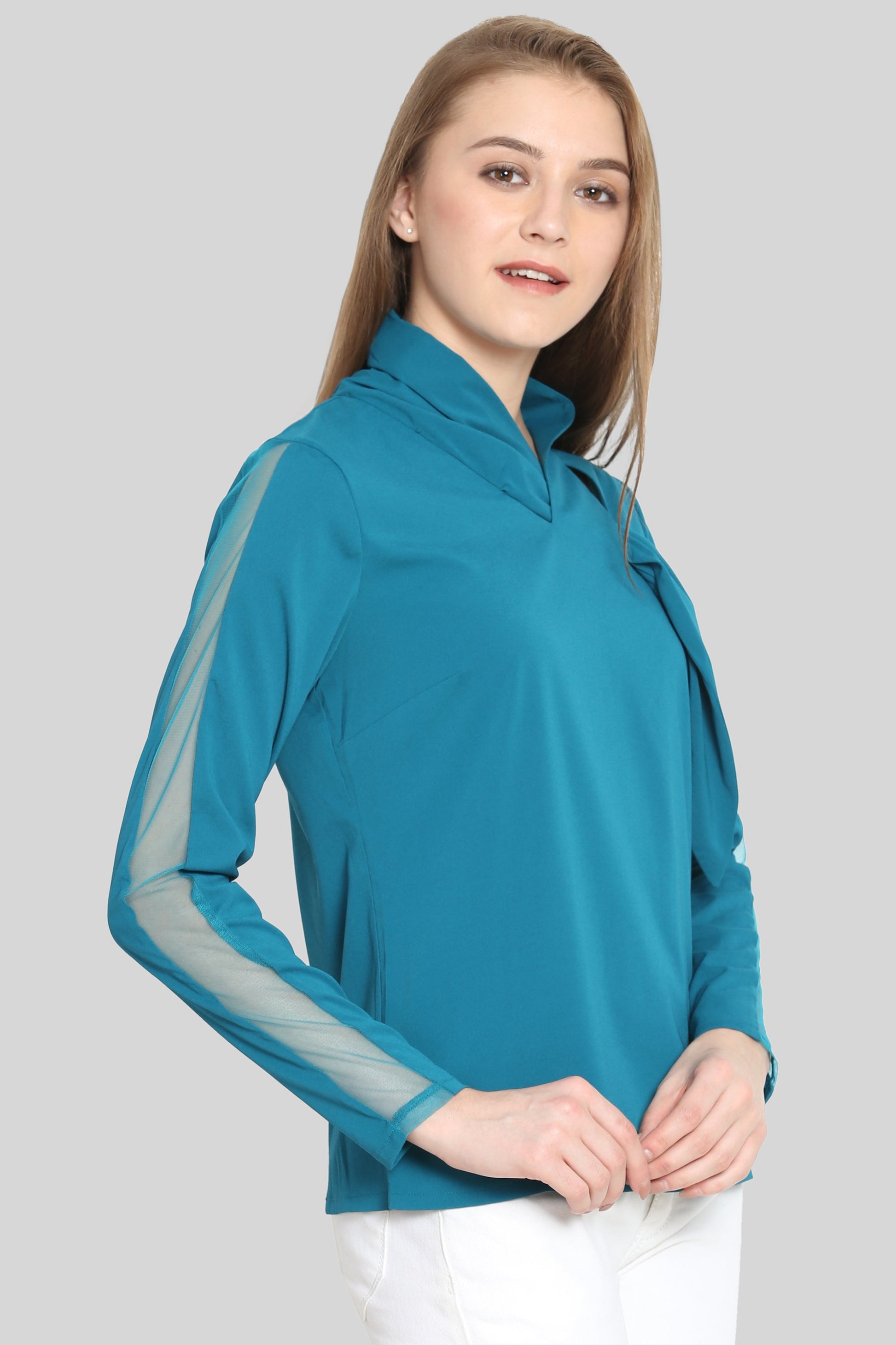 Teal tie Top with mesh sleeves