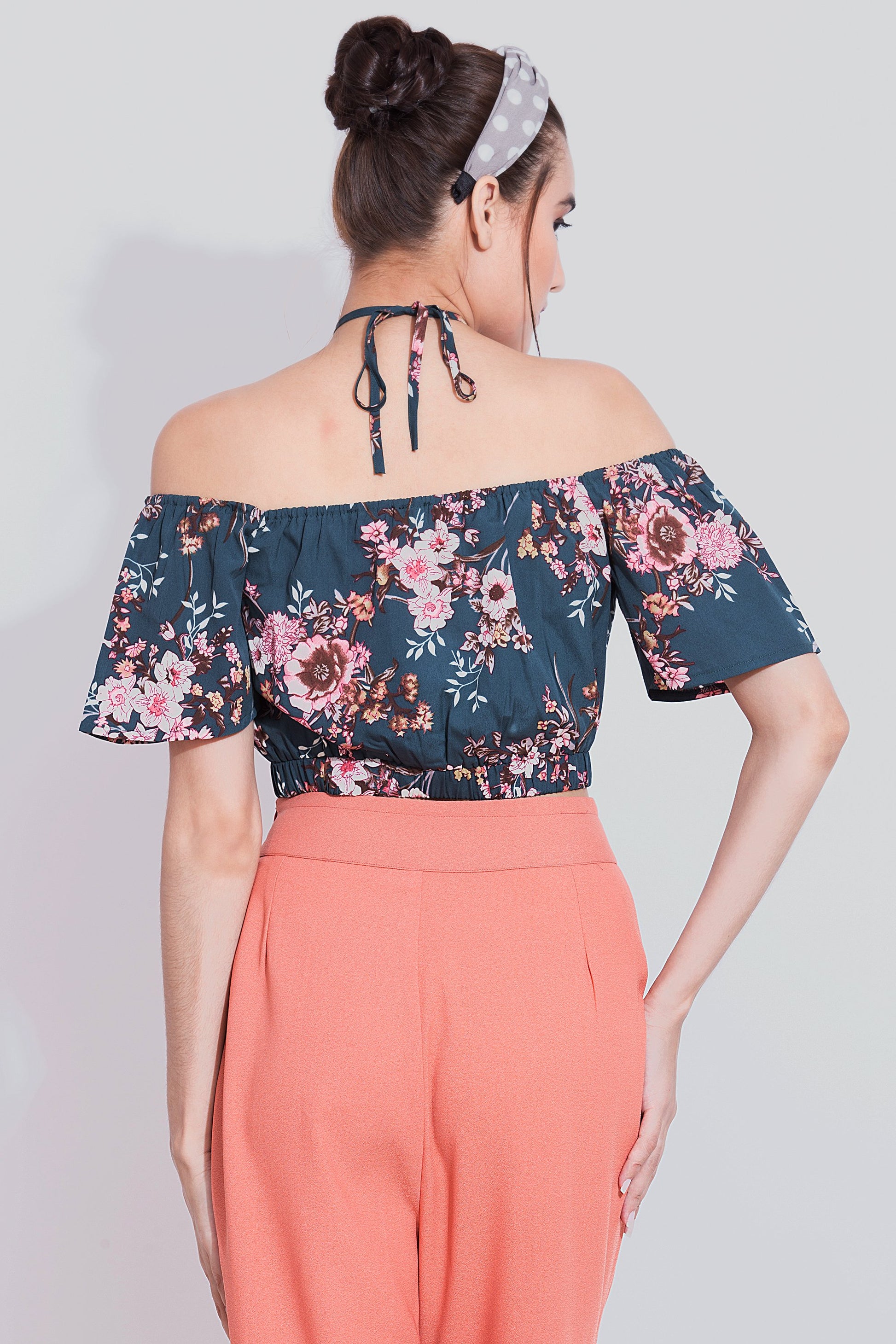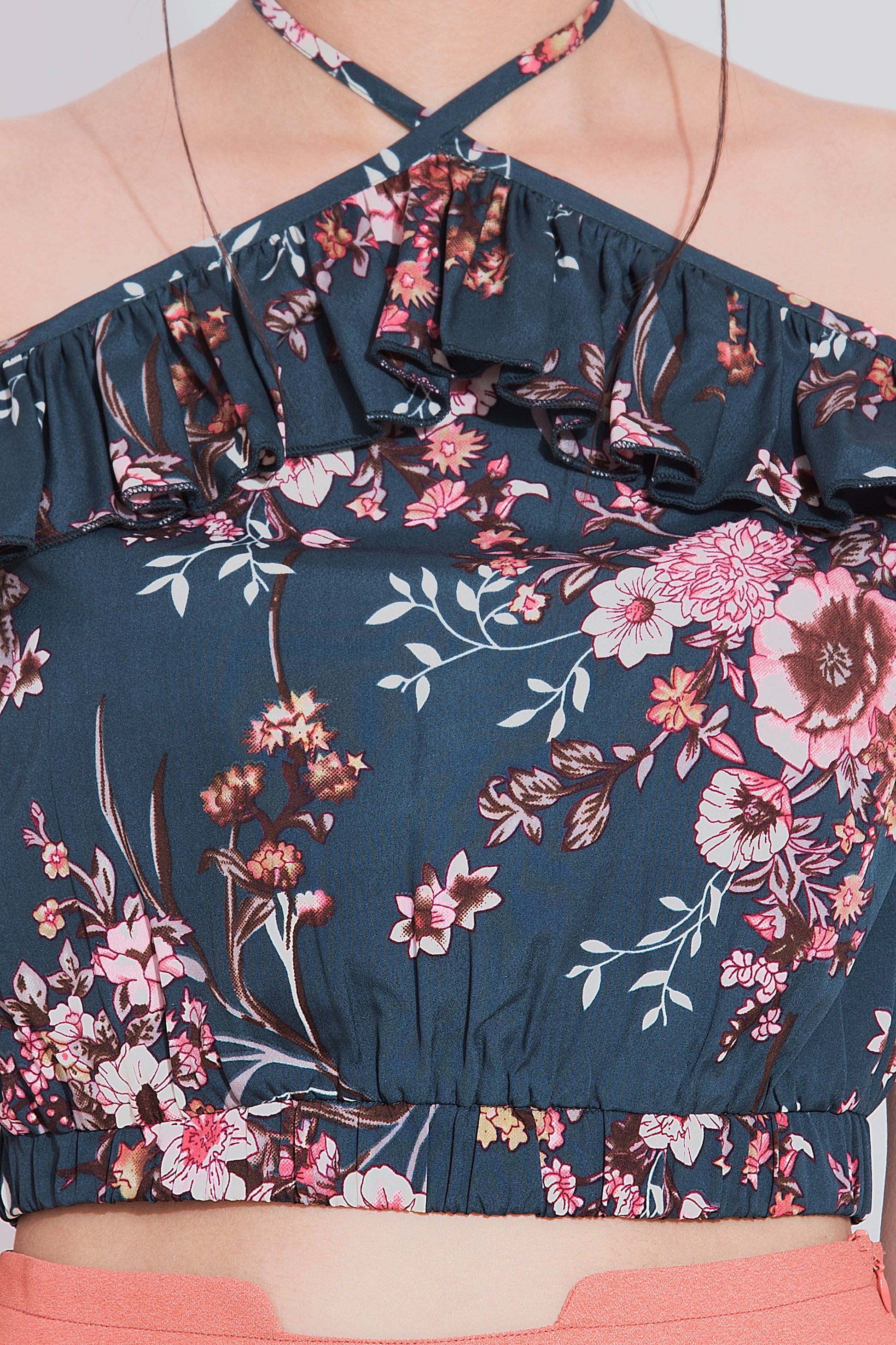 This Teal floral halter neck crop top is exclusively designed. Your savoir faire will be highlighted as you wear this top from SEW. Made of premium quality fabric, this top is highly comfortable and a perfect pick for your travel vogue. Team it with a pair of pastel pants or shorts for a sassy look.