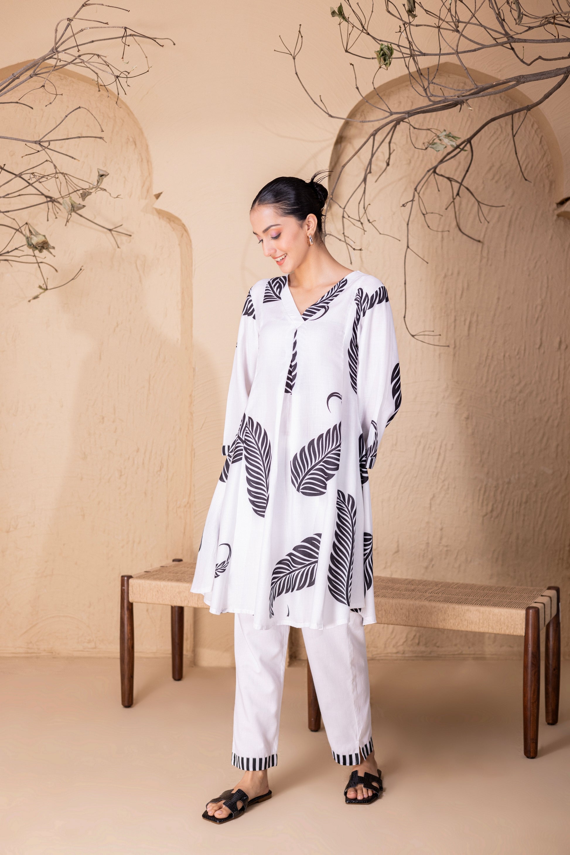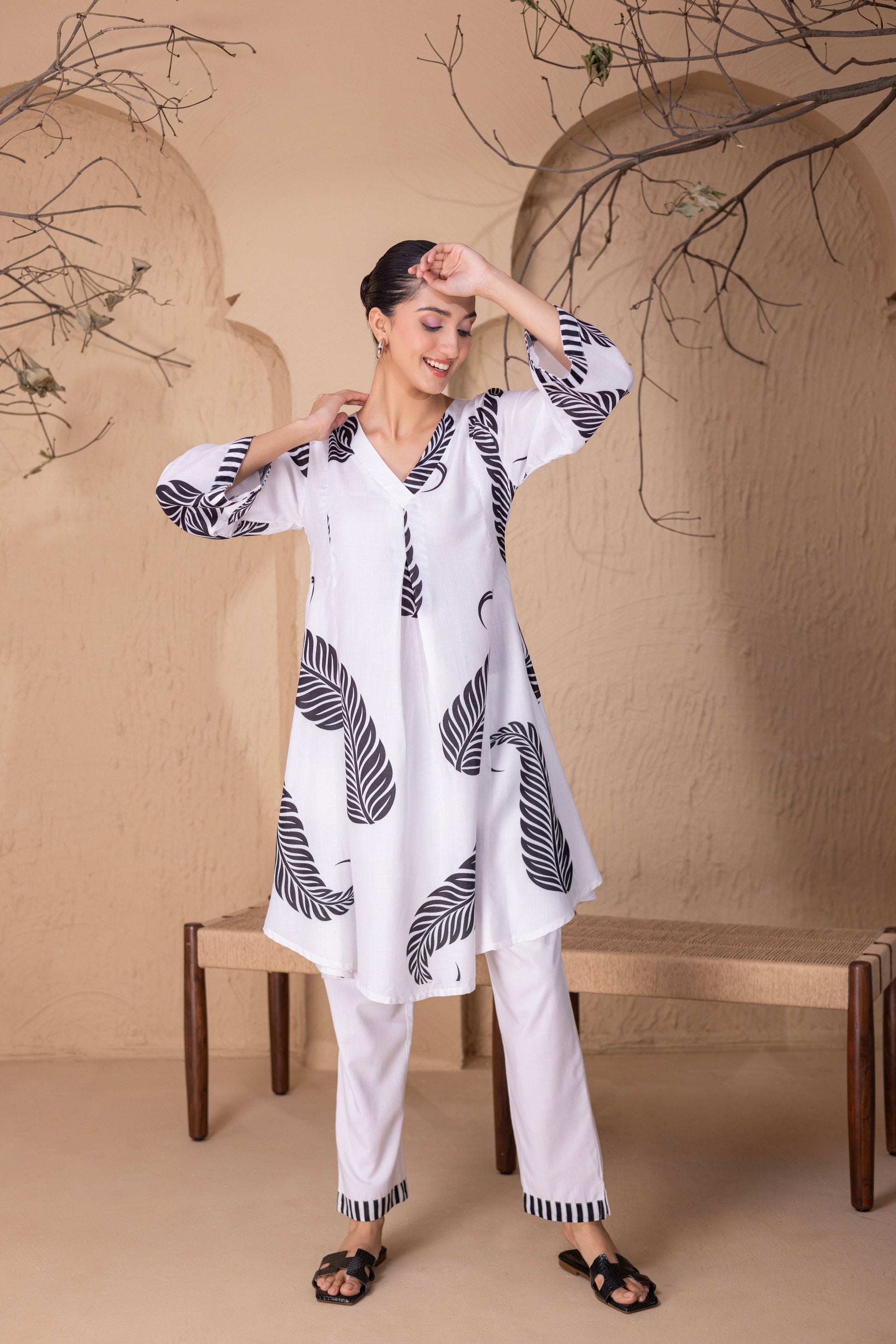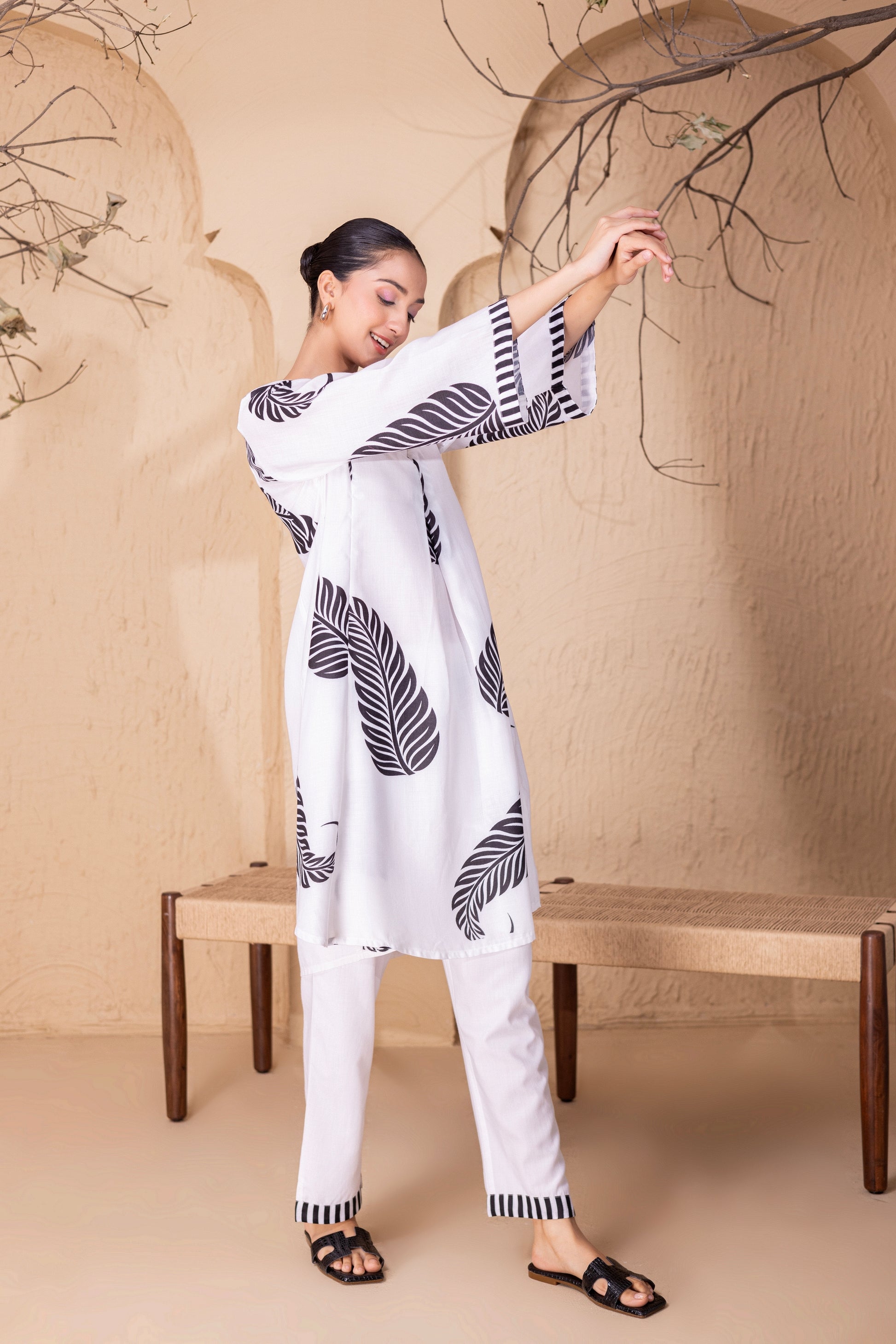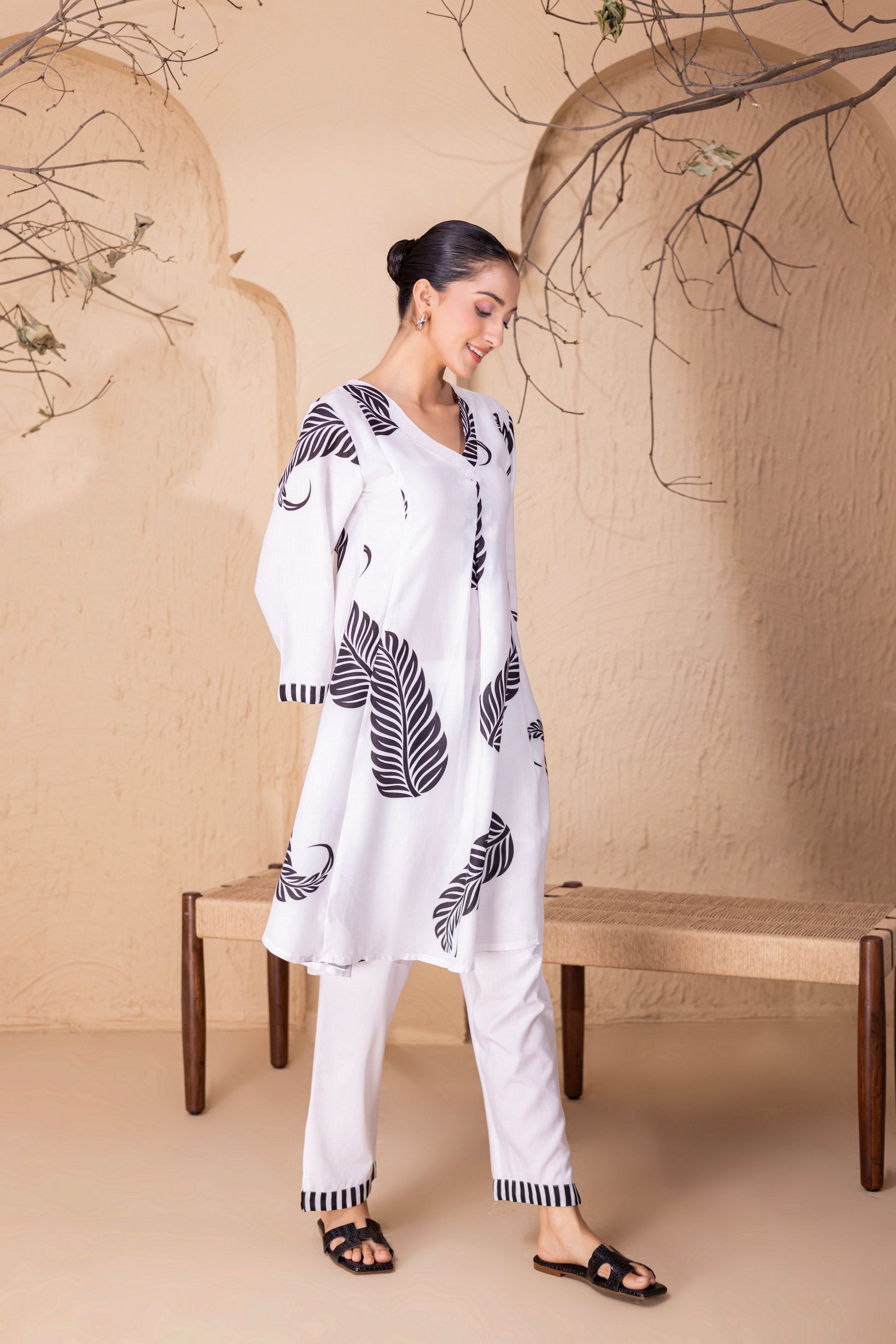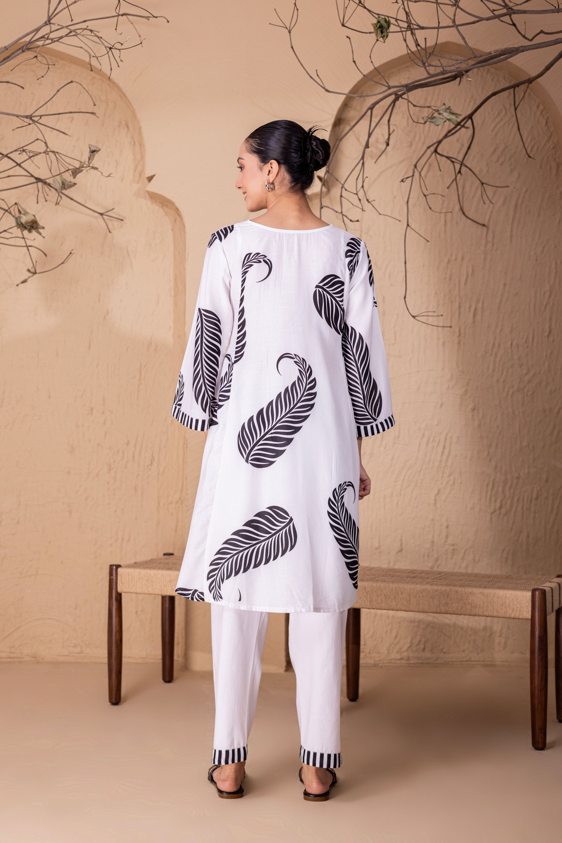 WHITE LEAF PRINTED KURTA SET
