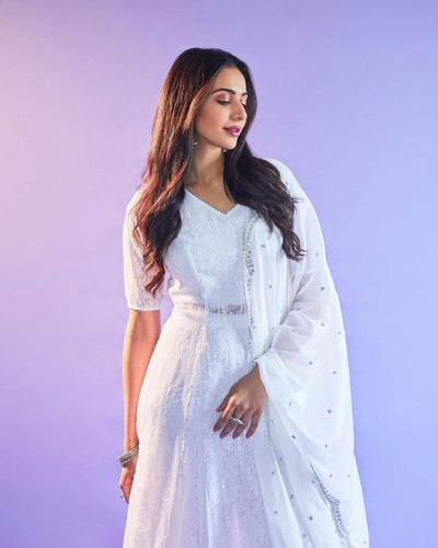 White Sequence Embroidered Kurta Set With Dupatta